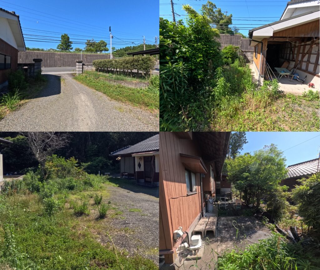 車が通るところ以外は雑草だらけの状態です。毎年の草刈りが大変なので、雑草対策を進めています。面積も広いので土地の有効利用も考えたいと思っています。