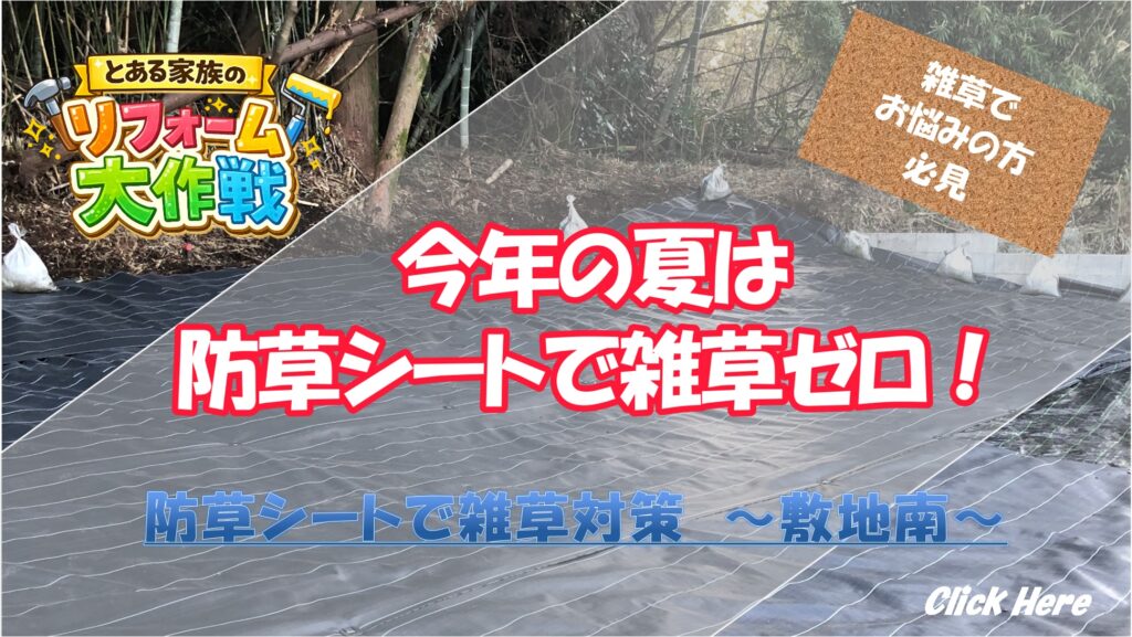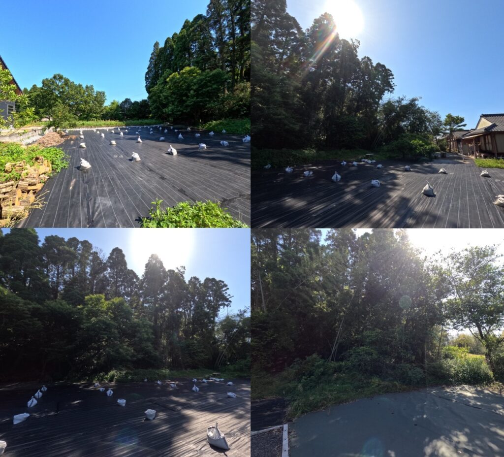 我が家に住み出した2023年、ととの背丈より高い雑草で、前にも進めない状態でした。お隣さんに迷惑もかかるので、真っ先に防草シートで雑草対策をしました。いずれ、将来は家庭菜園を始めたいと思っています。現時点では雑草対策を進めています。