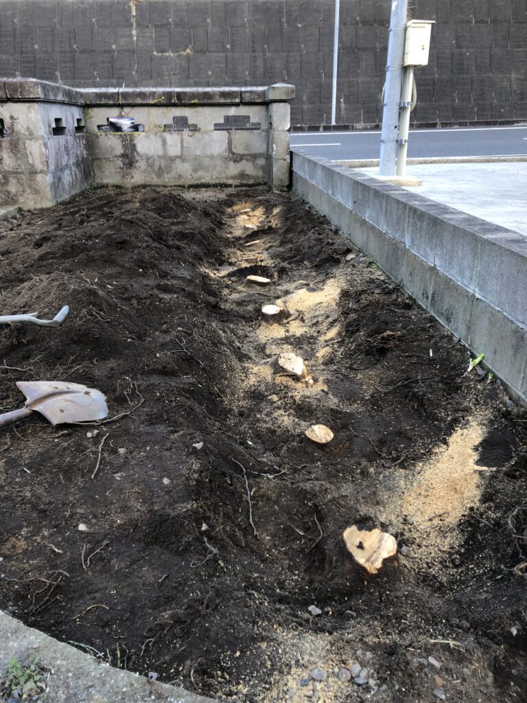 今後の予定は木材で目隠しフェンスの作成、あとは花を植えるスペースを作って、その周りは固まる土で防草対策をしていこうと思ってます。