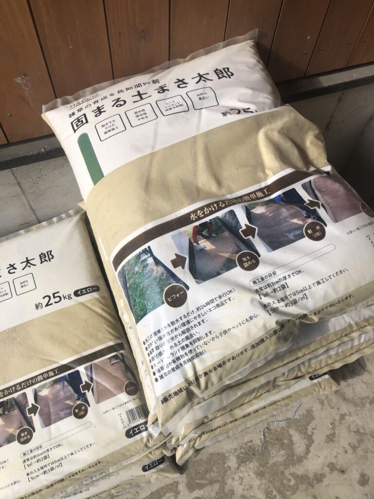 固まる土はナフコの固まる土まさ太郎のイエロー(25kg)です。