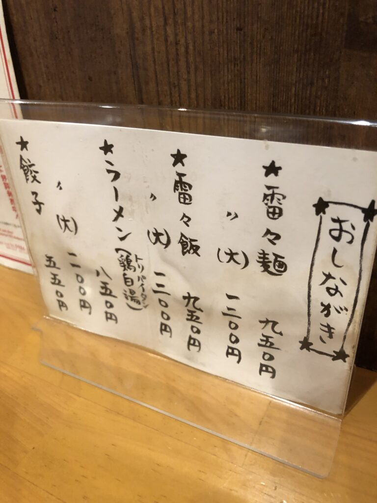 ととは久しぶりにラーメン大、かっかは雷々麺、ぼっさは雷々麺大を注文です。