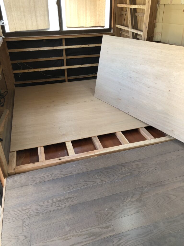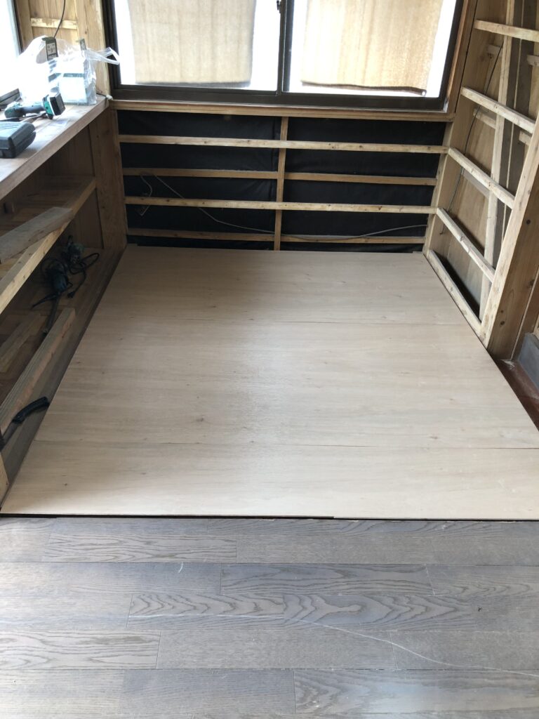 この上に根太、コンパネ、床材を入れて、和室の高さになるはずです。