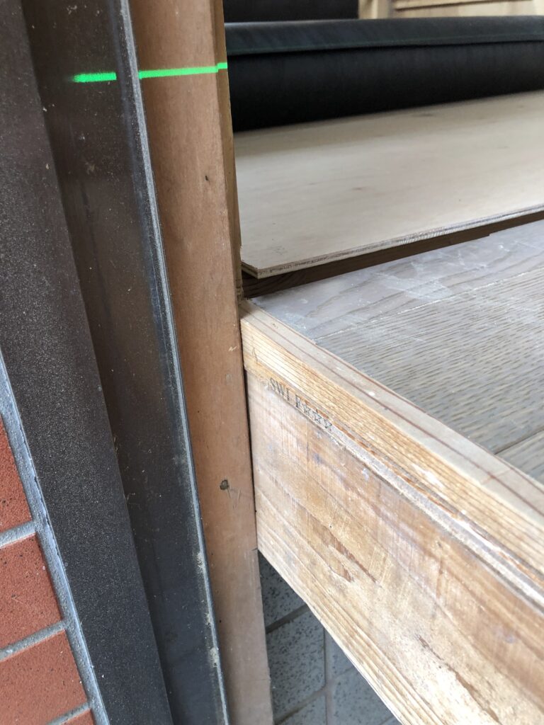 この後は根太を一本置いてみて、最終高さのチェックをして本日の作業は終了です。