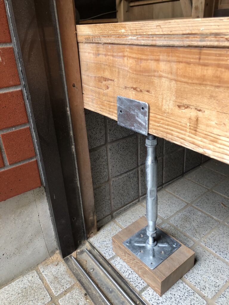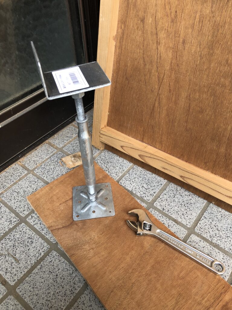 鋼製束を固定して、真ん中の部分をスパナでクルクルと回すと、床上がりました。