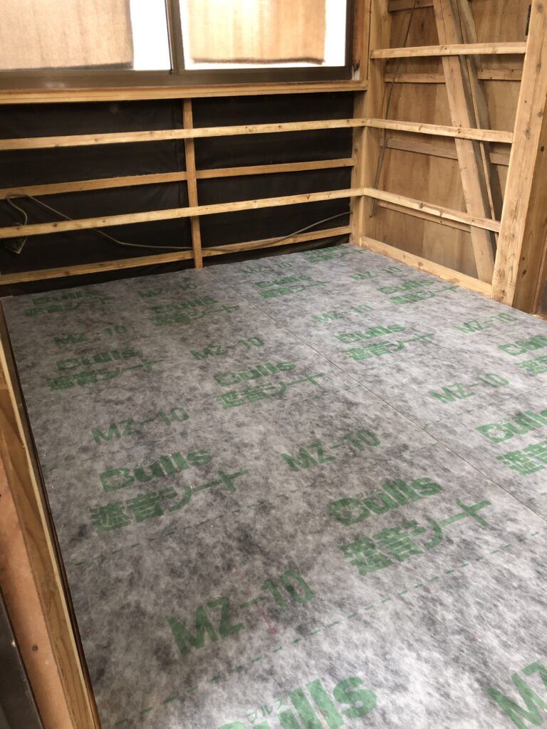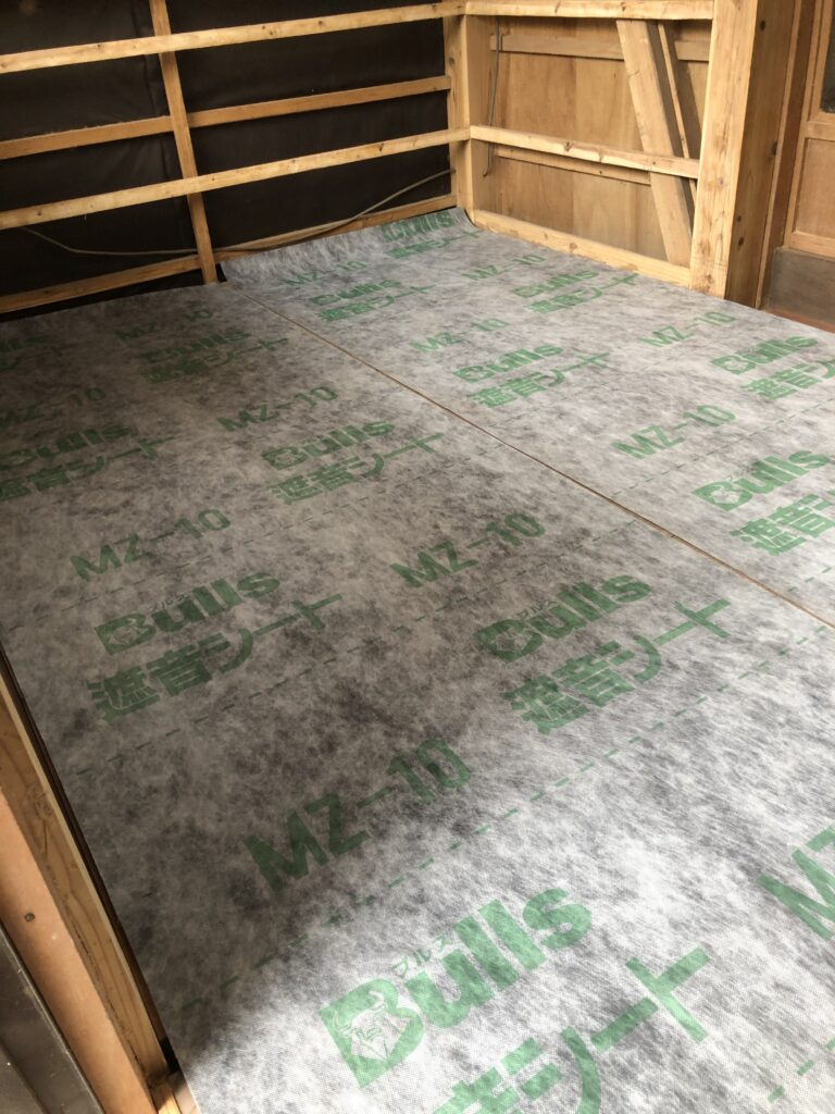 次は遮音シートを敷きます。