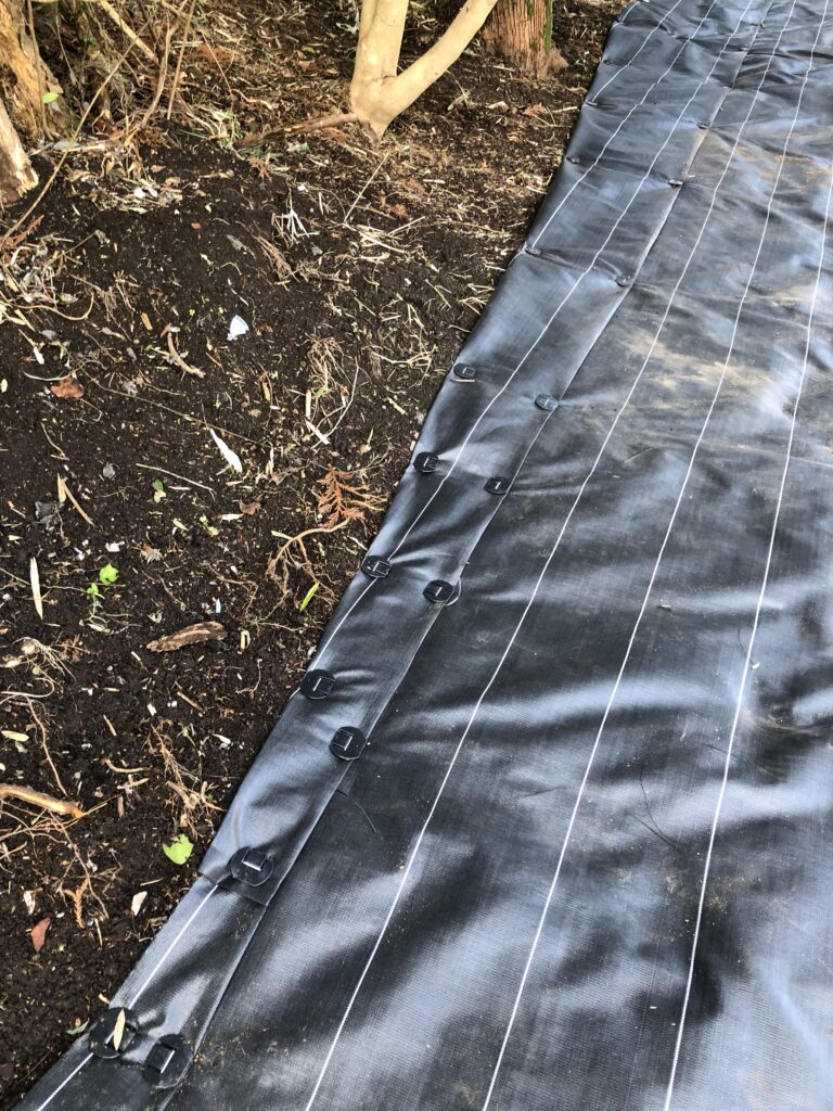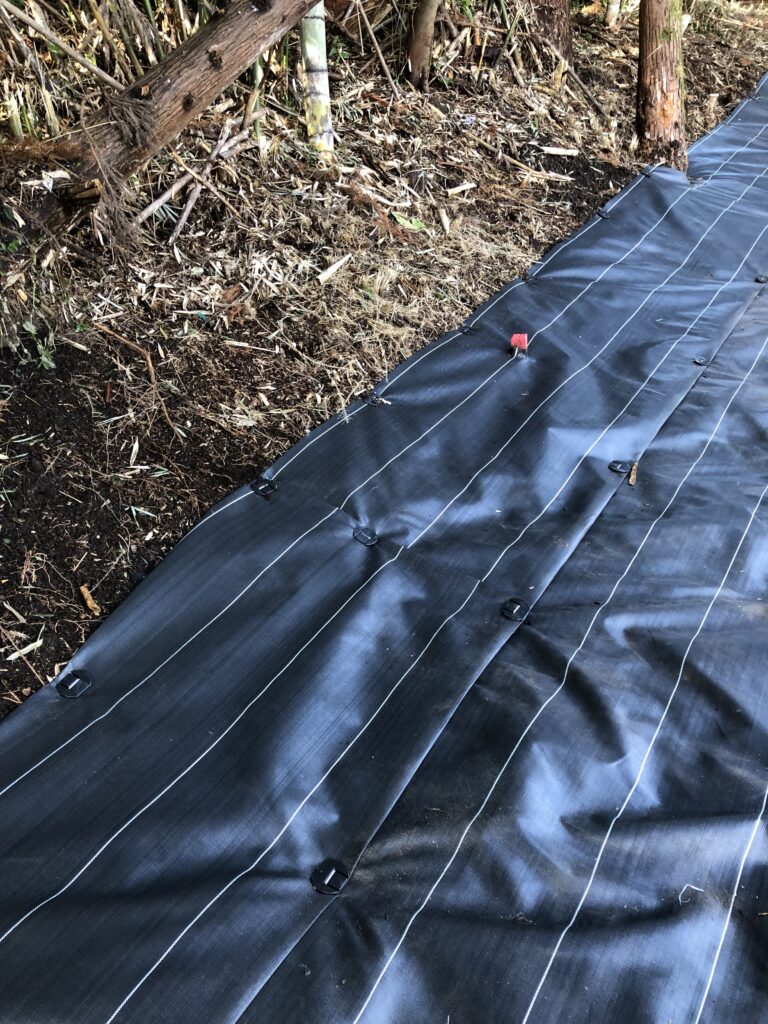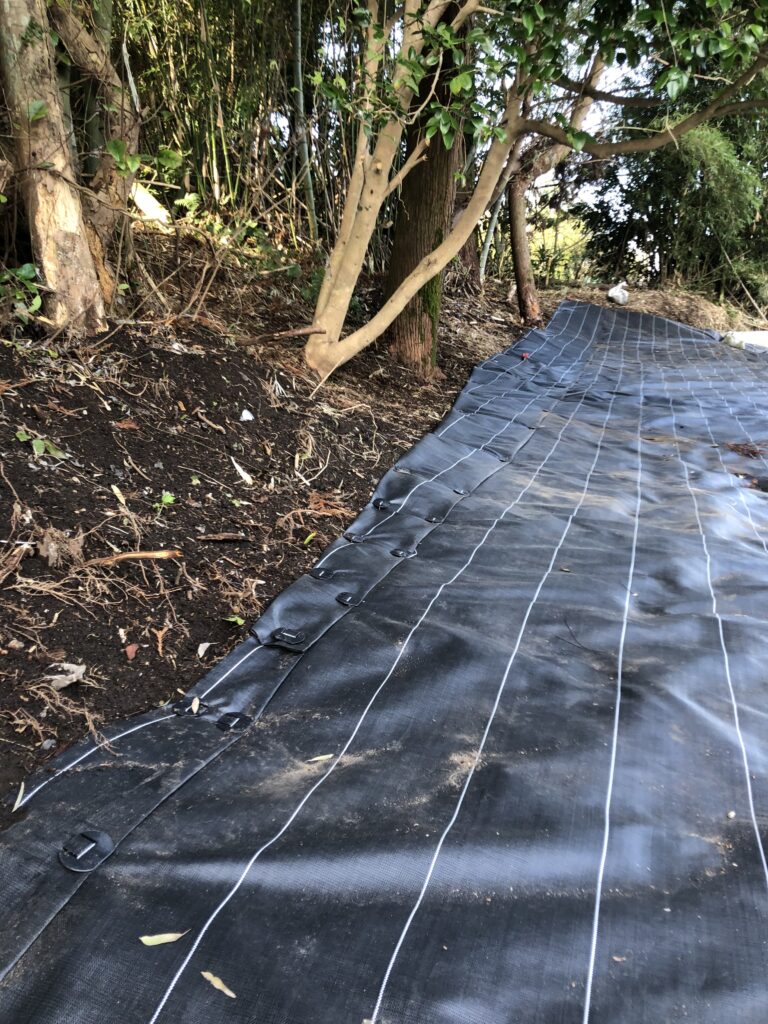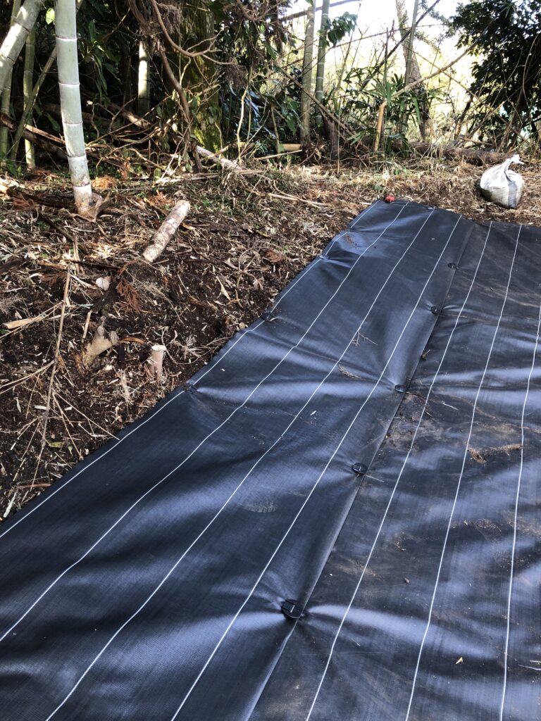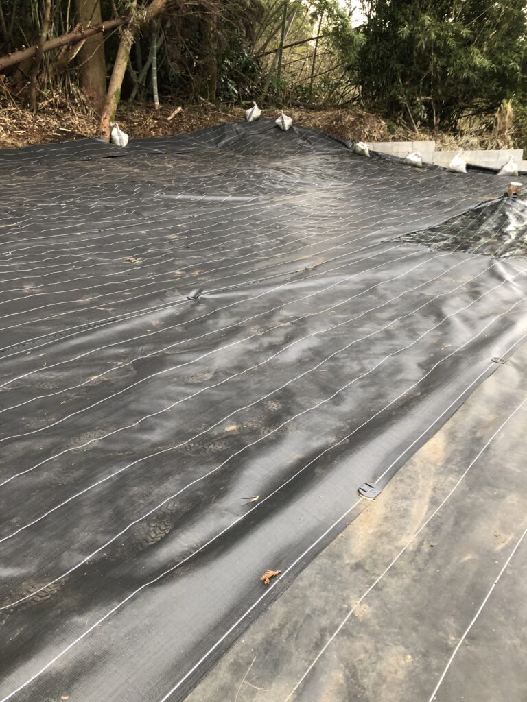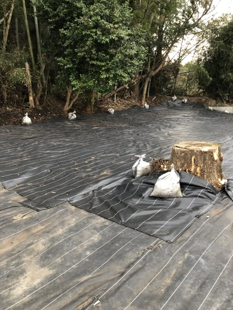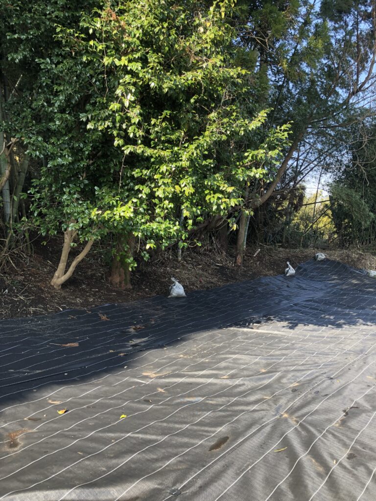やっと敷地の南側と東側のエリアに防草シートを敷きました。