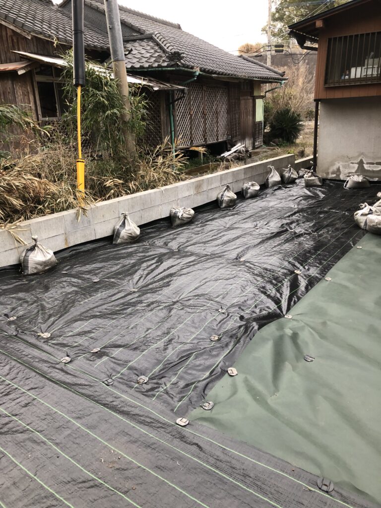 今回、防草シートを敷いたエリアを細かく撮影しました。