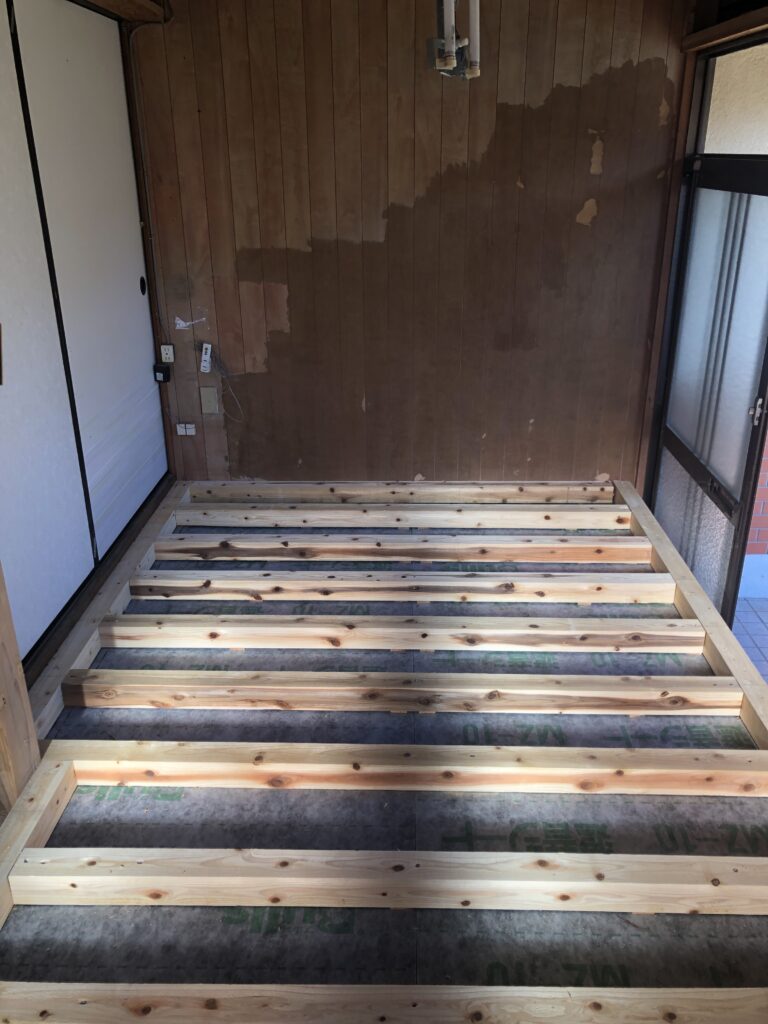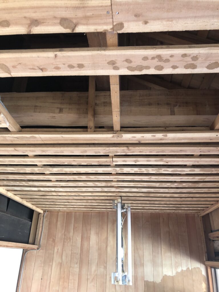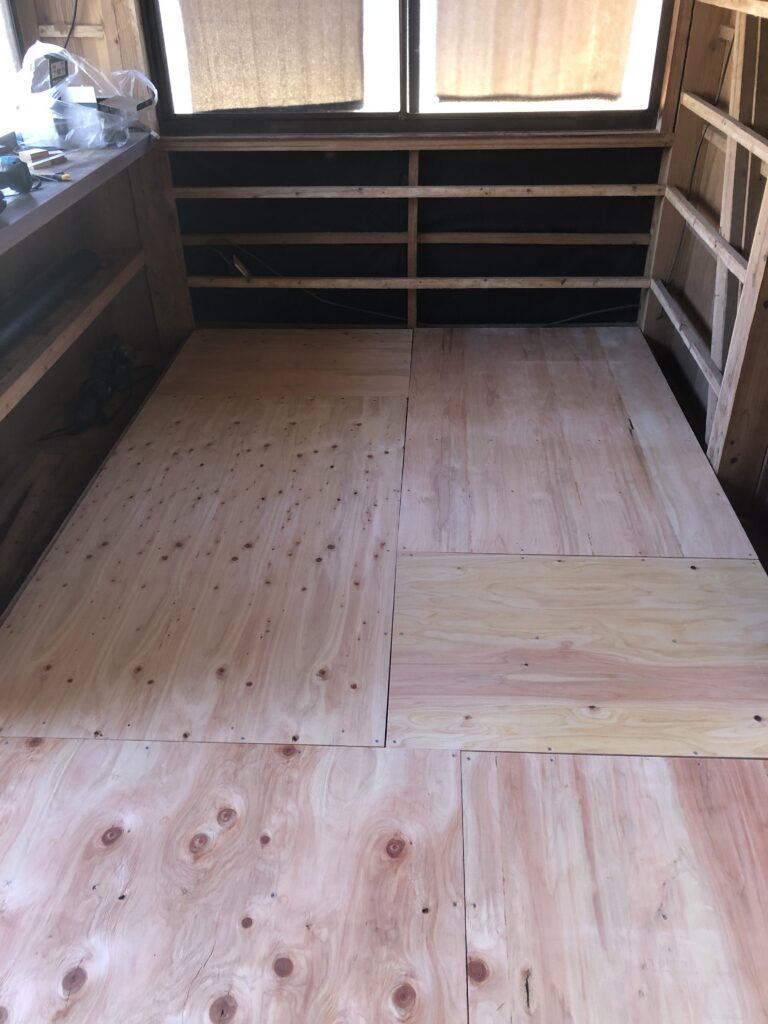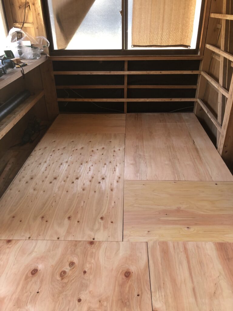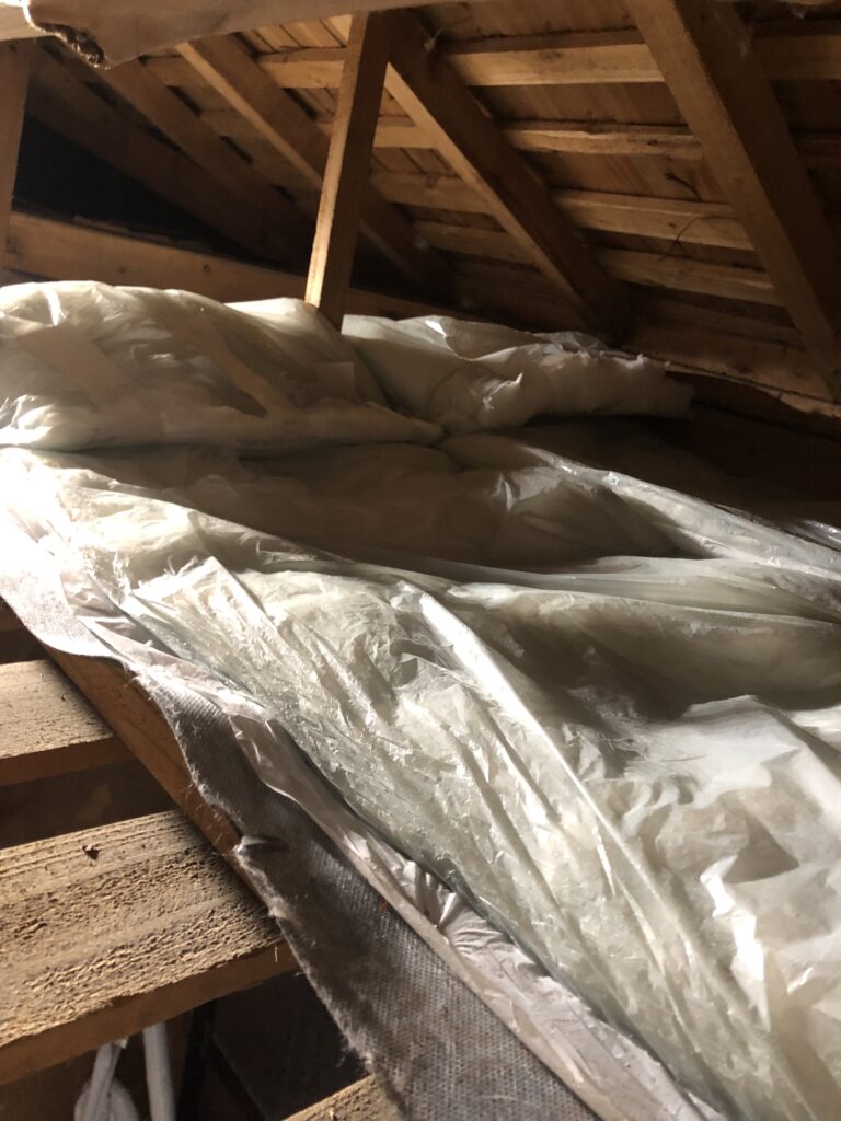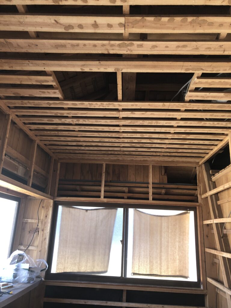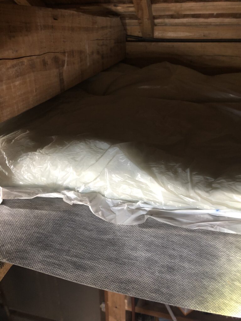 ぼっさの部屋の屋根裏の半分ぐらいのエリアに遮音シートと断熱材を入れて、今日の作業は終わりです。