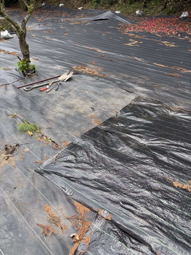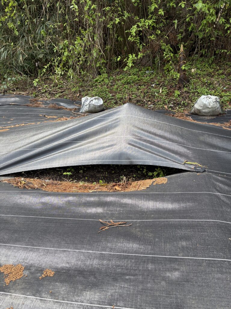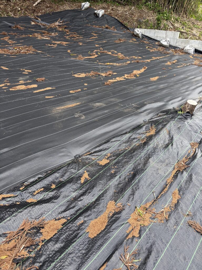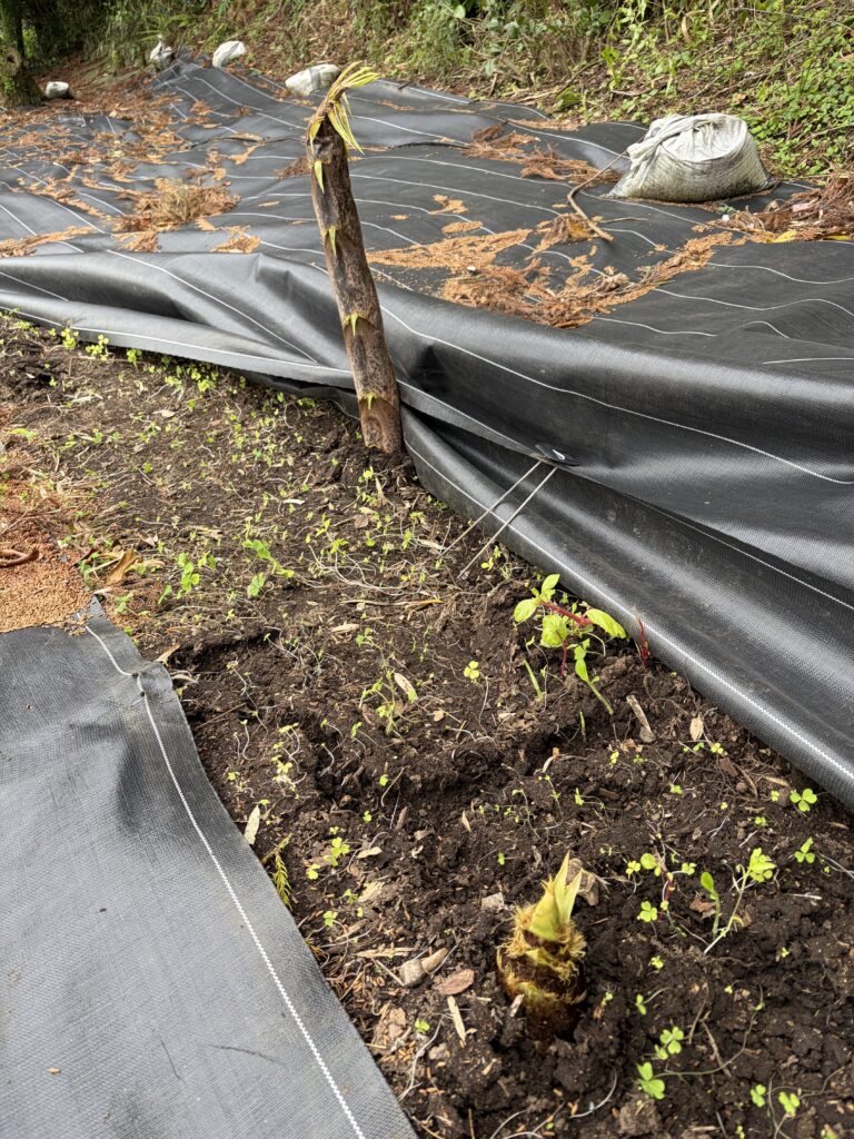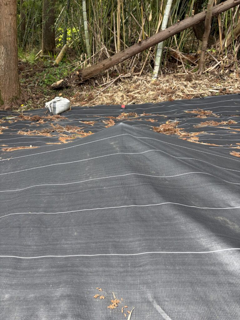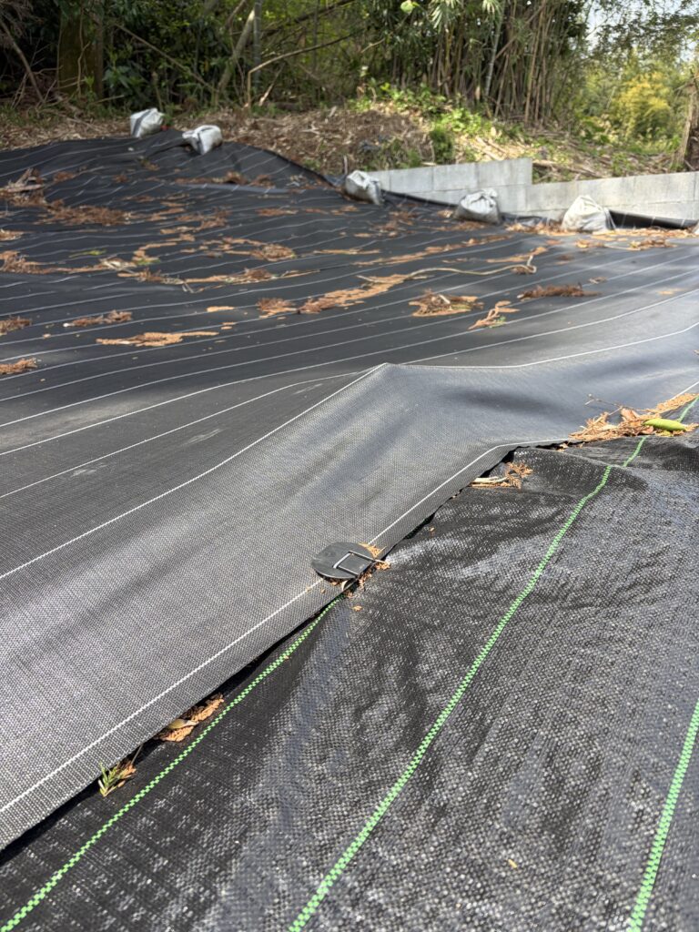 たけのこを収穫して、3箇所目、4箇所目の防草シートを元に戻して、作業終了です。