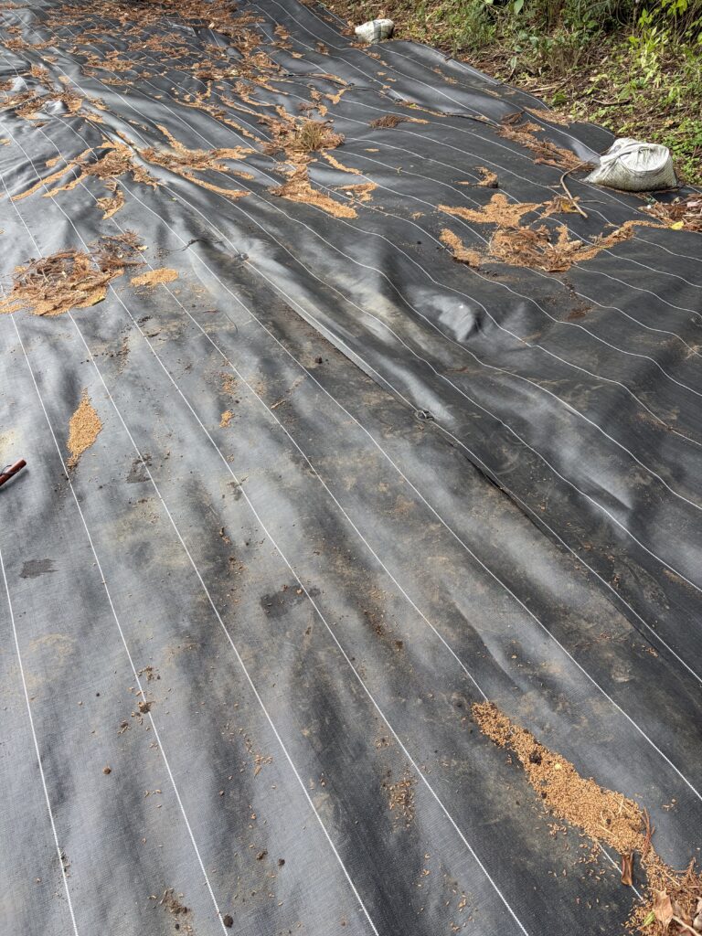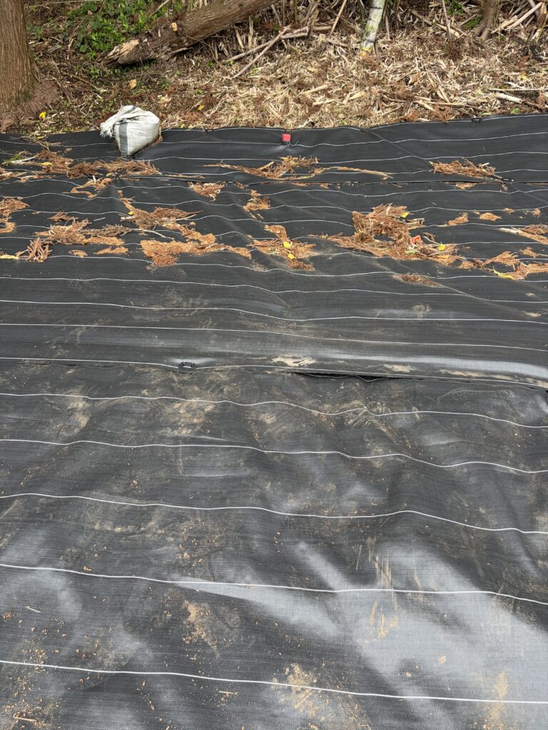 以前敷いた防草シートに異変が発生です。