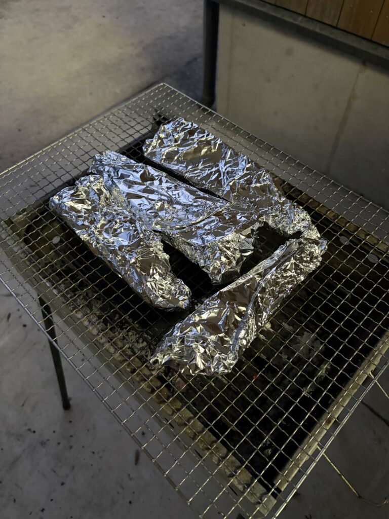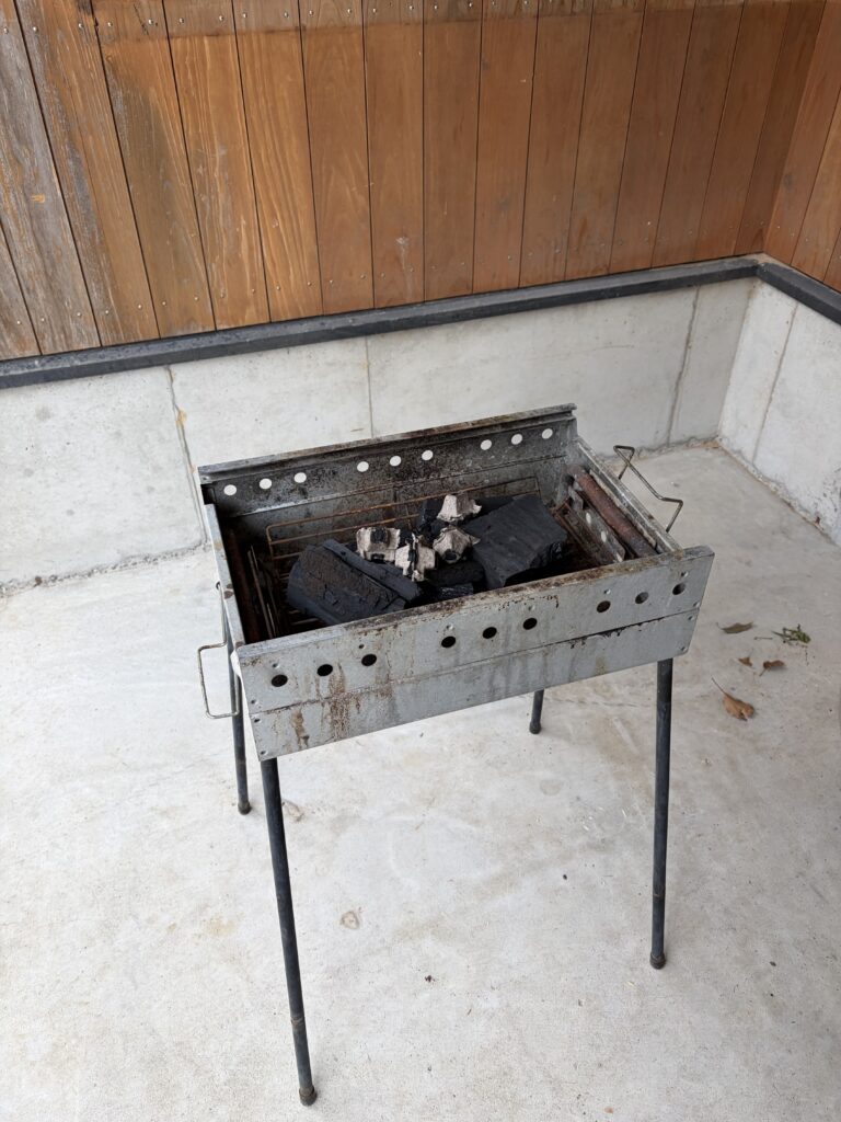 たけのこが採れたてなので、バーベキューコンロで焼きたけのこを楽しみたいと思います。