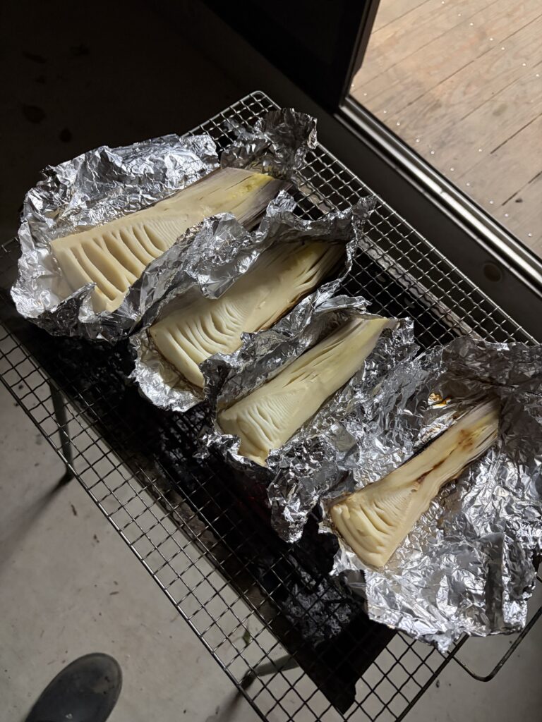 あとはぼっさが帰ってくる直前にたけのこを焼きました。