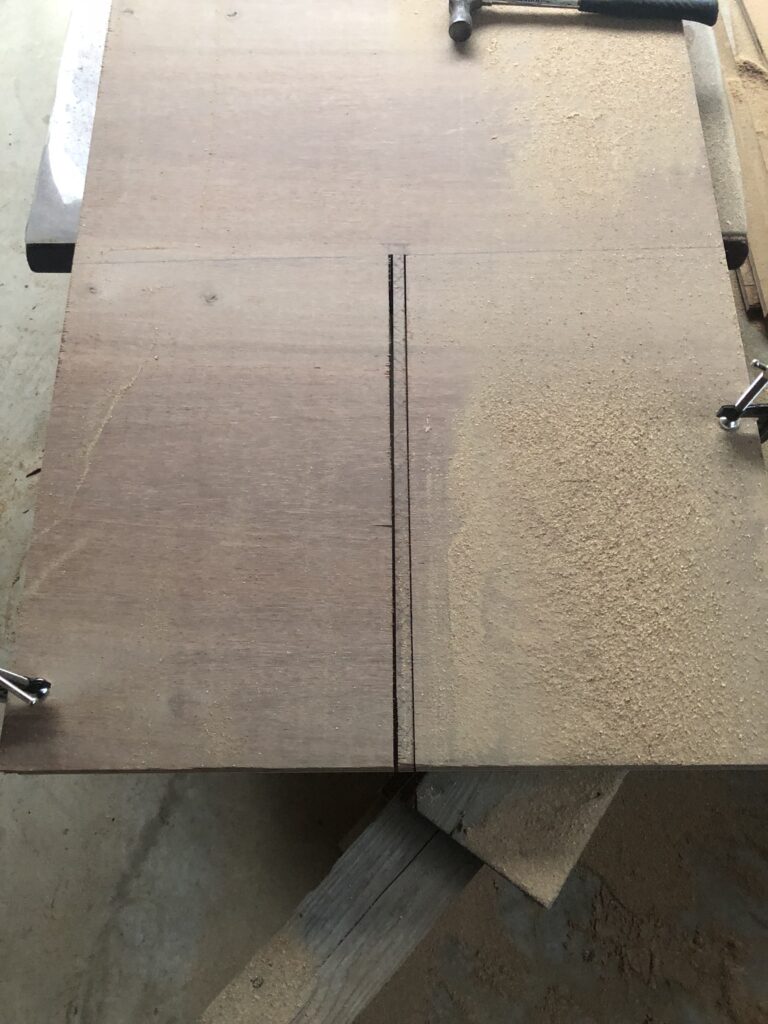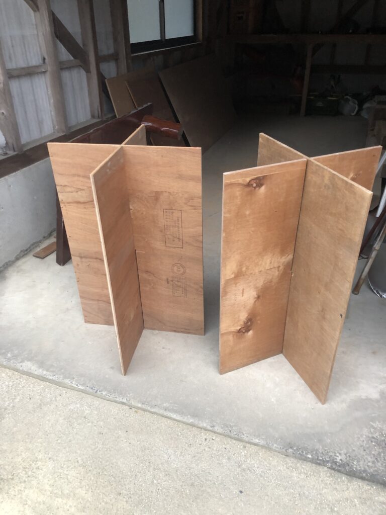 これを2枚1組で重ね合わせて、作業台の足が完成です。