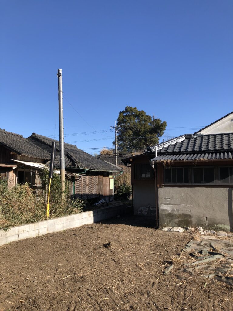 ブロック塀と家の周りは基礎があるのでピンが入っていきません。