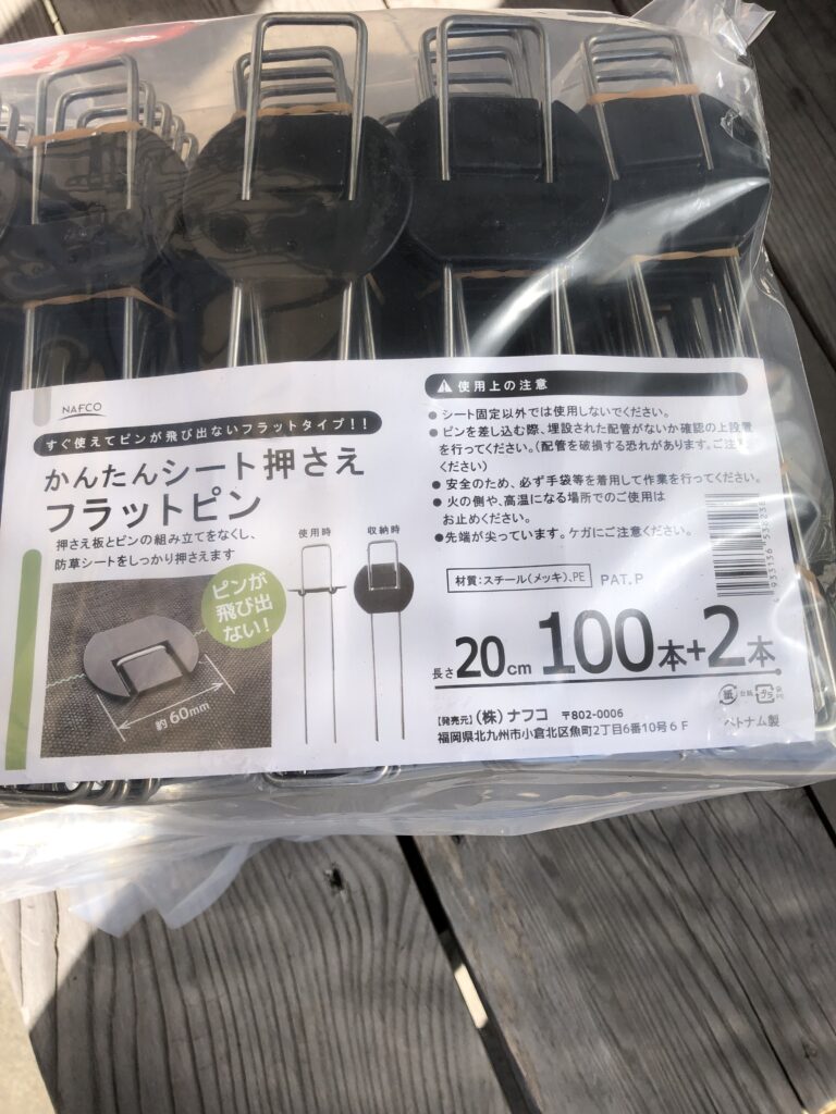 あと防草シートにピンを打つのですが、そこの隙間からも草が生えてきます。