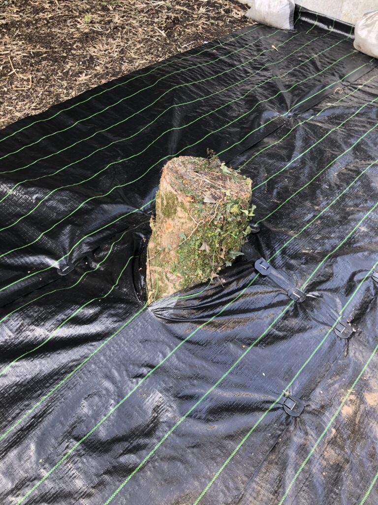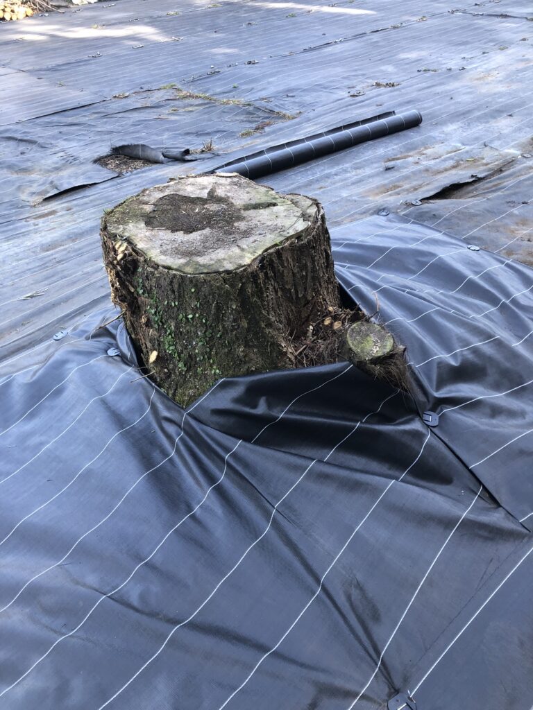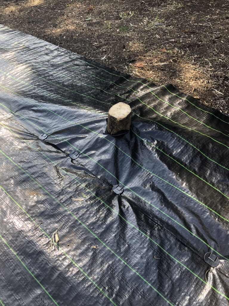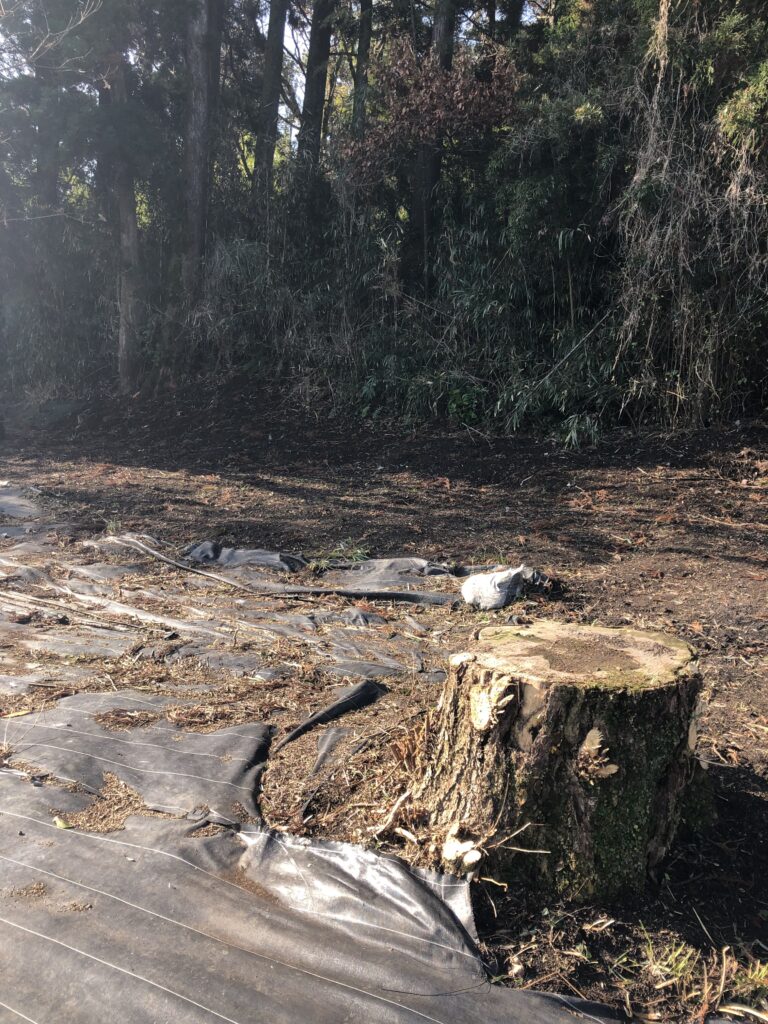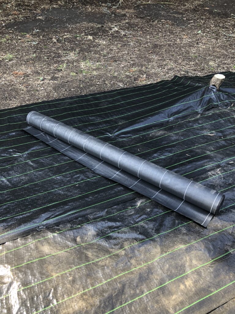 杉の枯葉や土が堆積しているので、次の列を敷く前に掃き掃除をします。