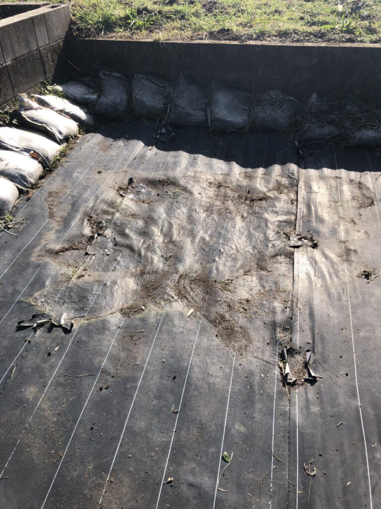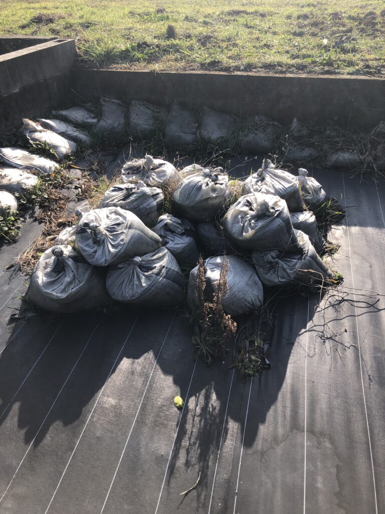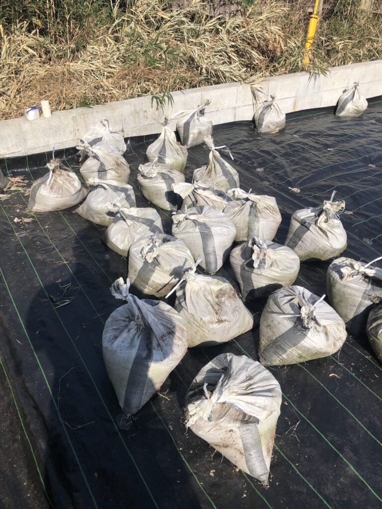 防草シートを敷く前に防草シートの押さえに使う土嚢の準備をします。