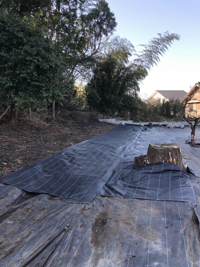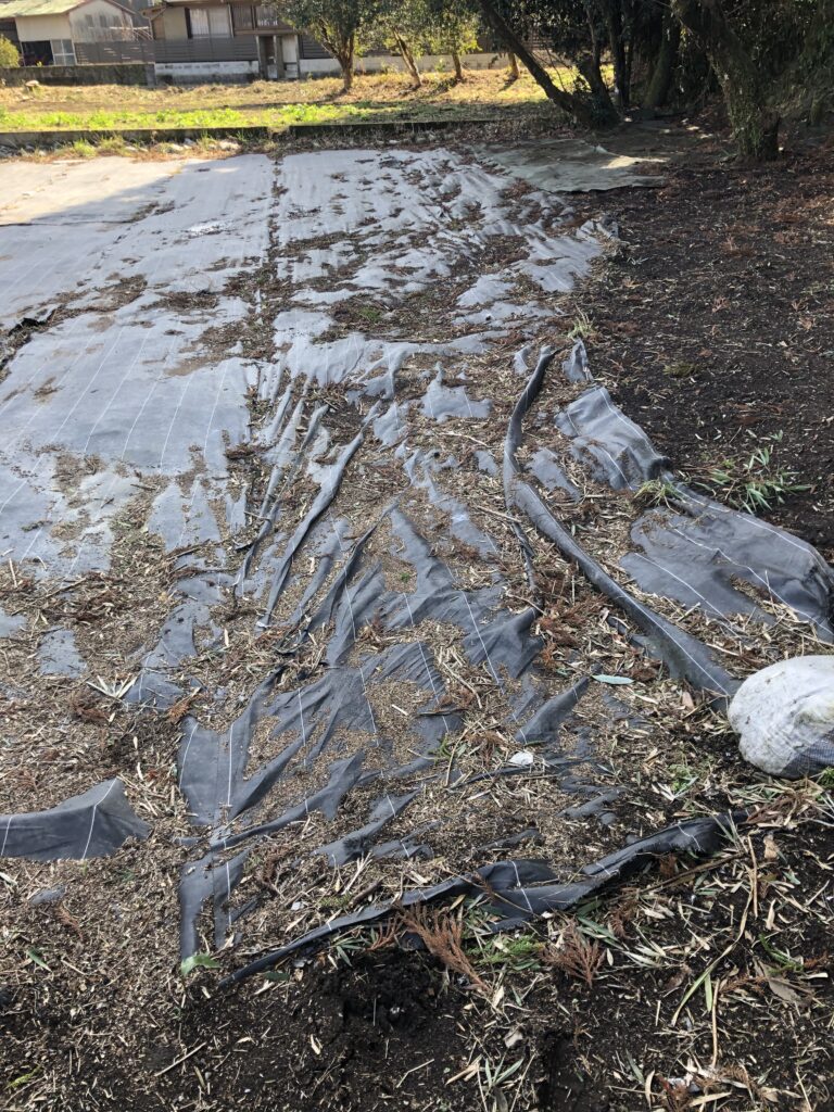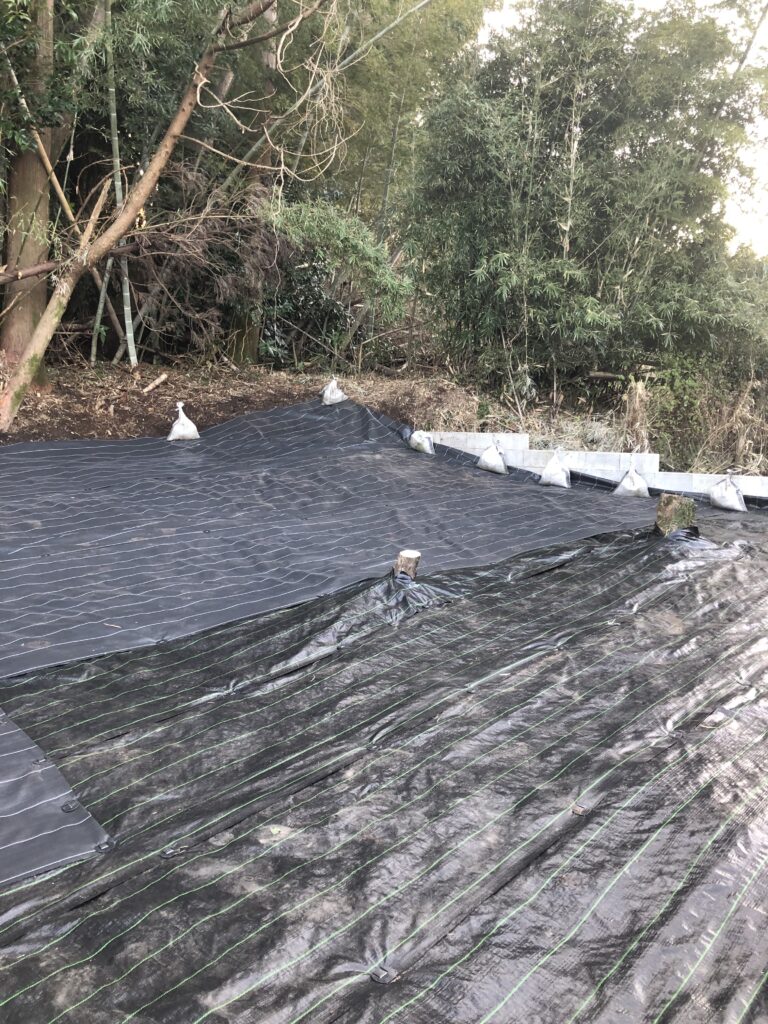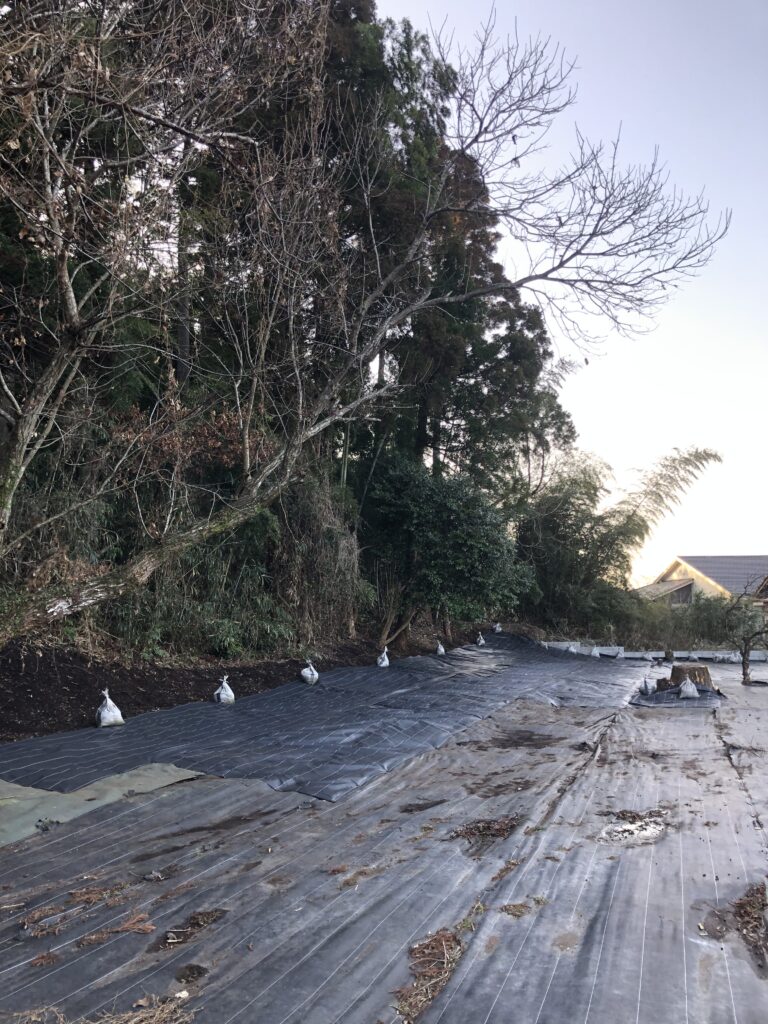 南側の敷地から土が流れてきているので、南から北に勾配がついています。