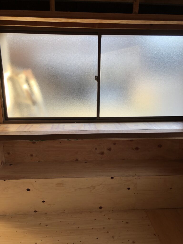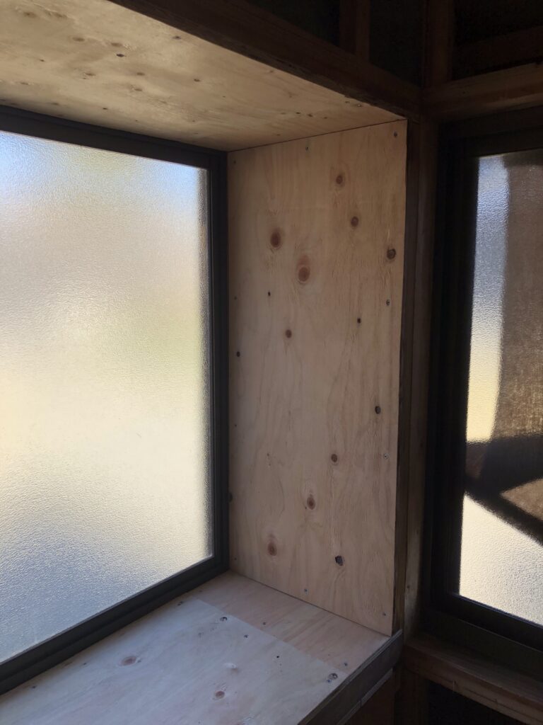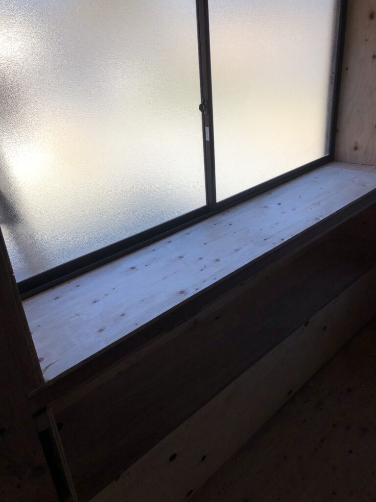 昨日は旧ちゃこ部屋の北側窓の下にある棚にコンパネを張りました。
