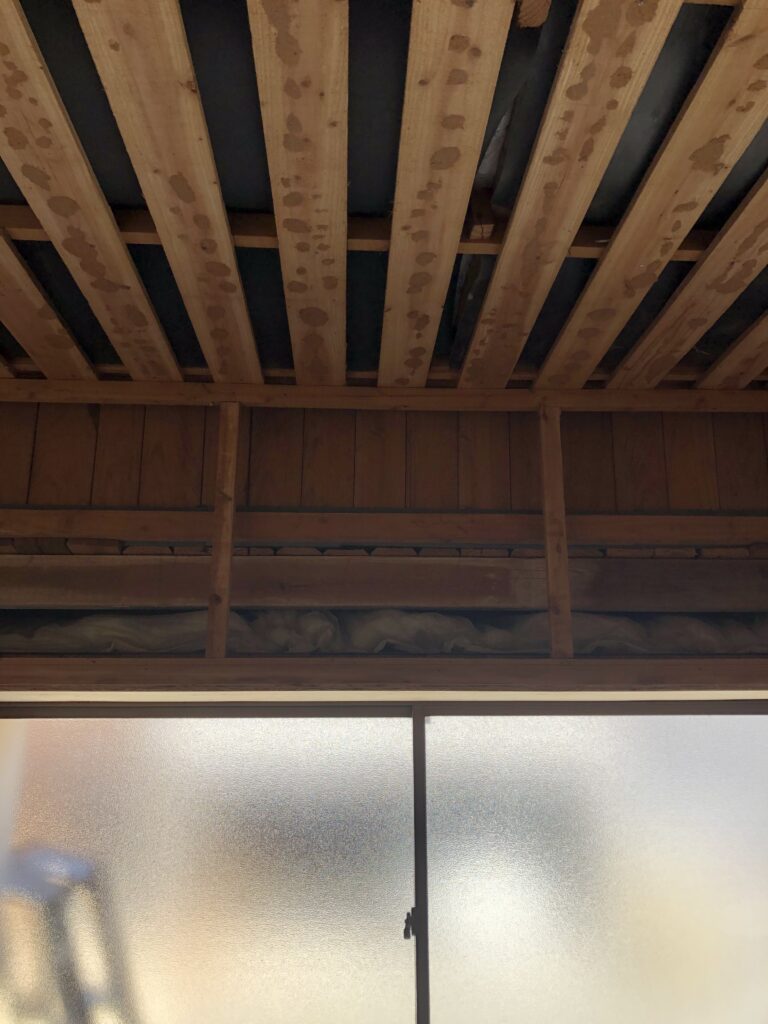 窓上の天井裏には断熱材(アクリアマット)と遮音シートを入れました。