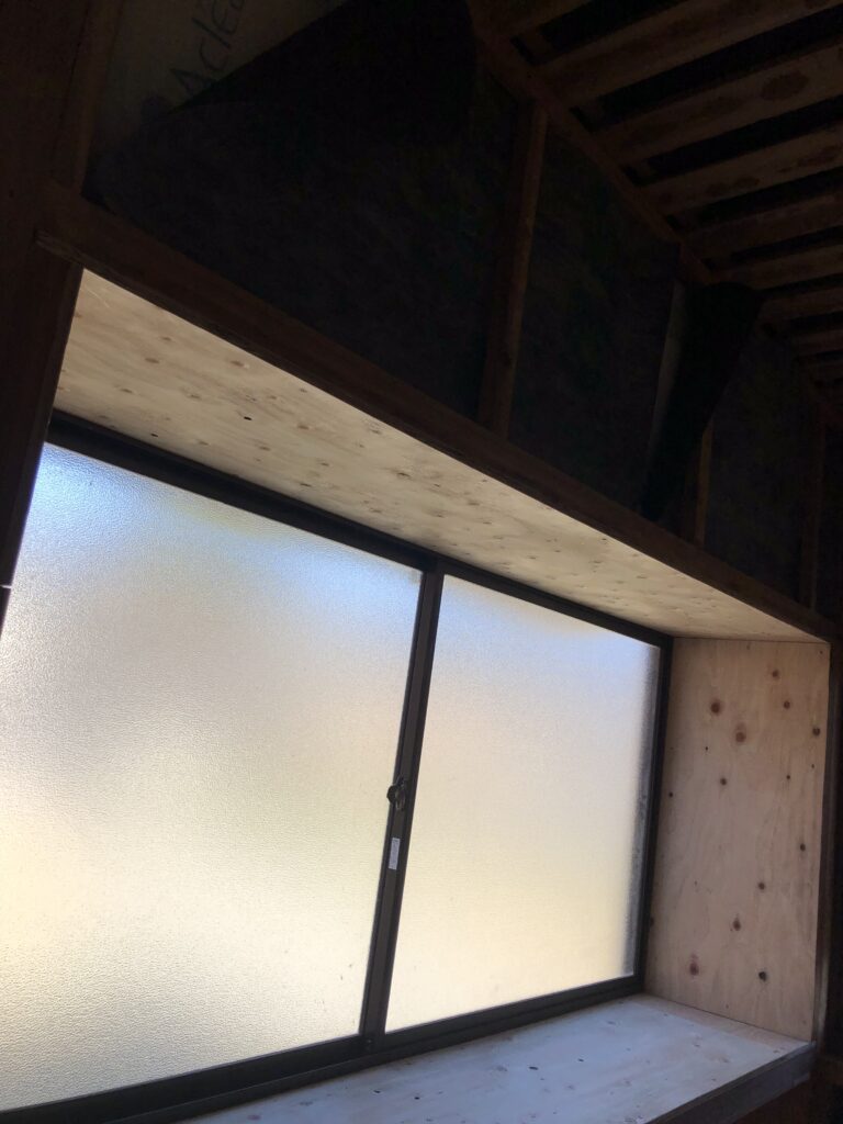 窓を取り付けている壁自体が傾いているので、コンパネをカットしても若干合わないところがあります。