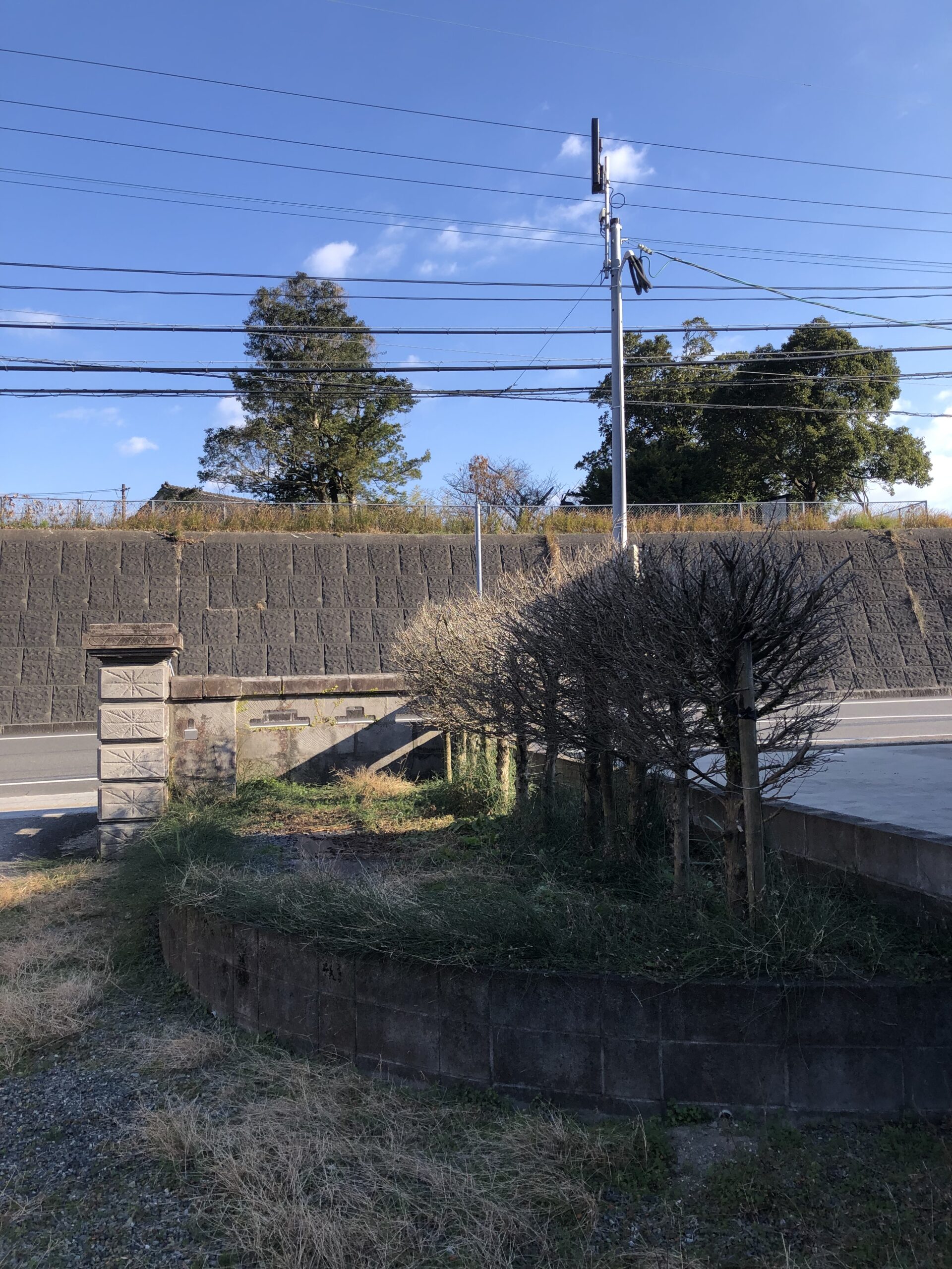 我が家の門の東側です。写真の手前は昨年、防草シートを敷いて、その上から砂利を敷いたのですが、草が生えてきました。何も対策していない場所と比べると、若干マシな感じですが。。。おそらく砂利についた土が少し残っていたので、それが原因かな?結構、某草対策として自信あったので残念です。また新たな対策考えてみます。お隣さんの目隠しの木は枯れているのでこちらもなんとかしたいですね。