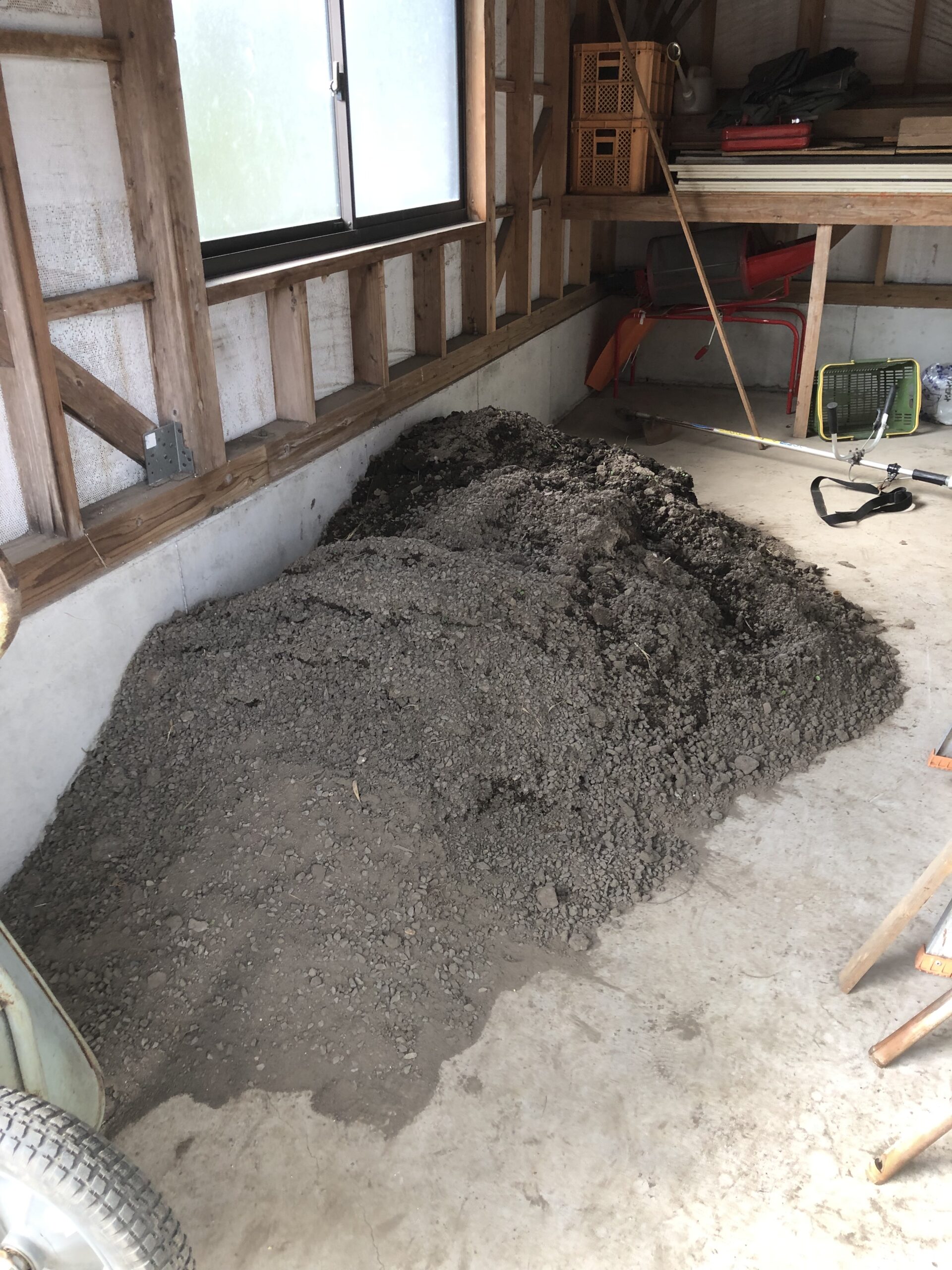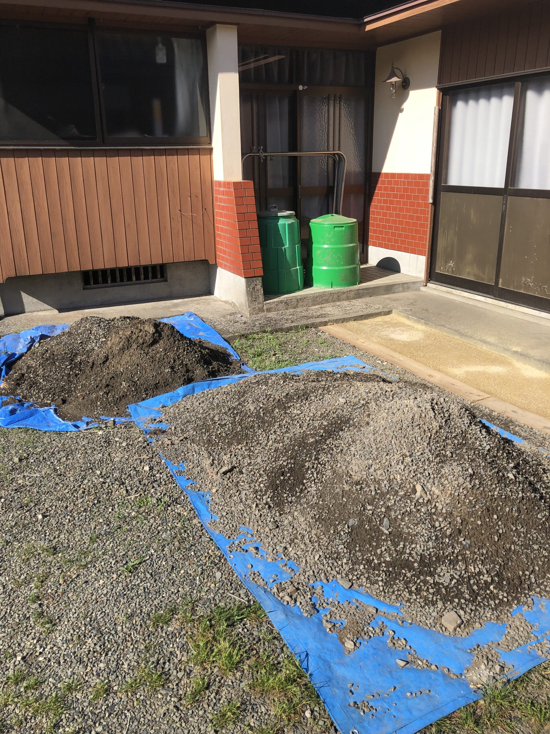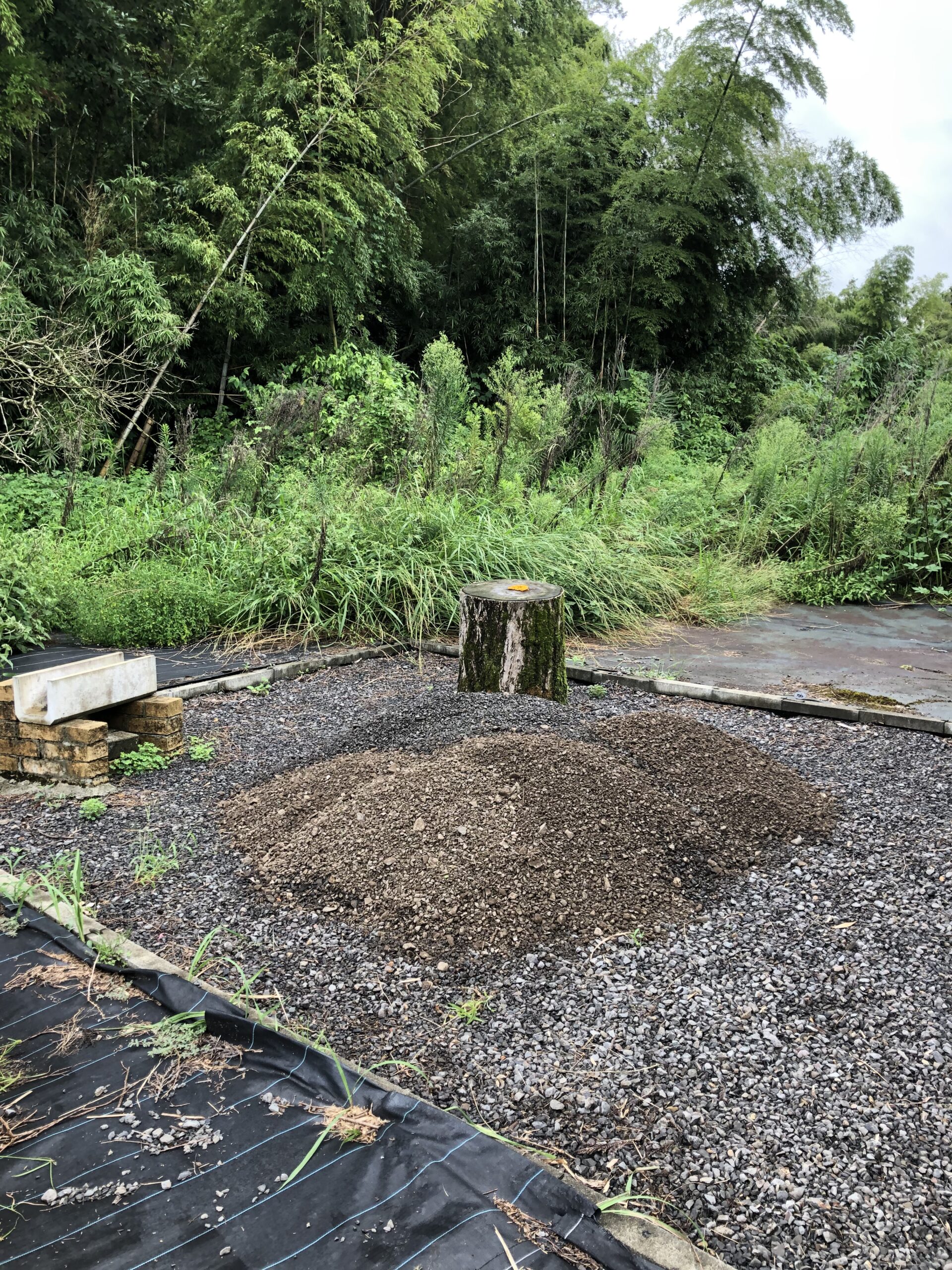 敷地南西です。昨年は敷地境界の目印探しから、境界線上にブロック施行をしました。その直後に防草シート敷いておけばよかったのですが、放置していたら、このような状態に。。。草刈りから始めて、防草シート敷かないといけませんね。
