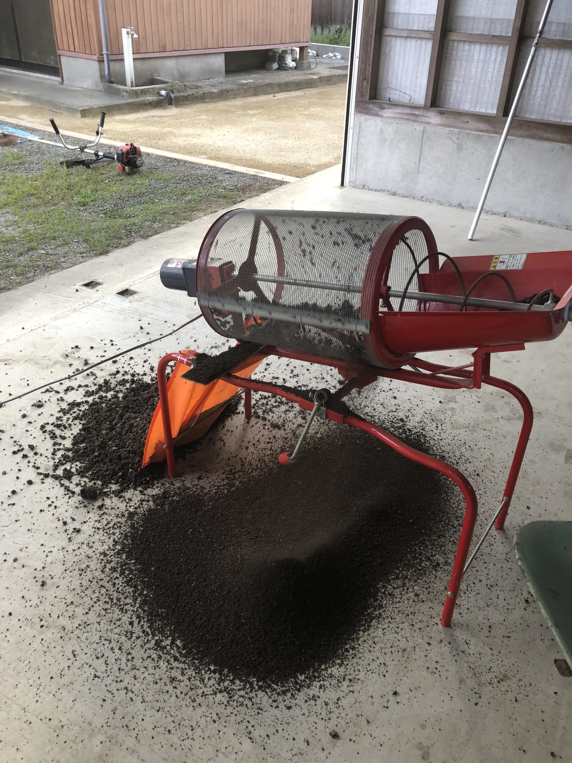 回転ふるい機で砂利と土を分ける