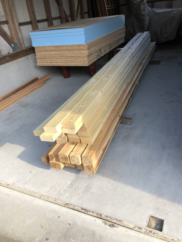 今日はその上に根太の取り付け、断熱材(スタイロフォーム)、コンパネ張りまで行きたいと思います。