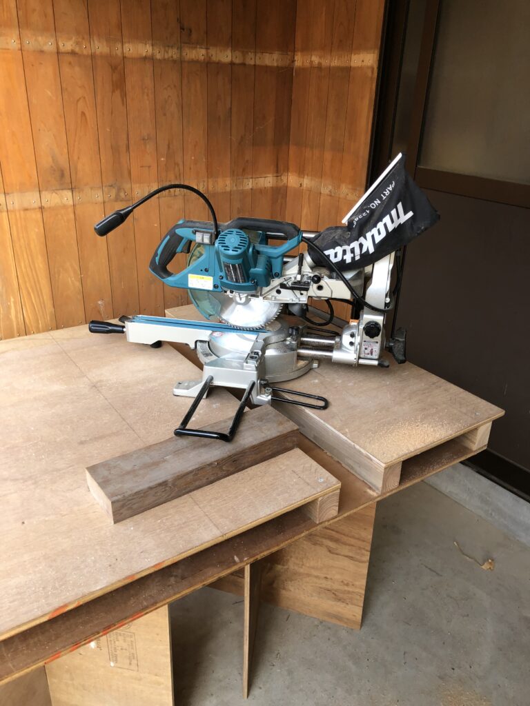 とりあえずスライドマルノコでいけるところまでカットして、材をひっくり返して再度カットします。