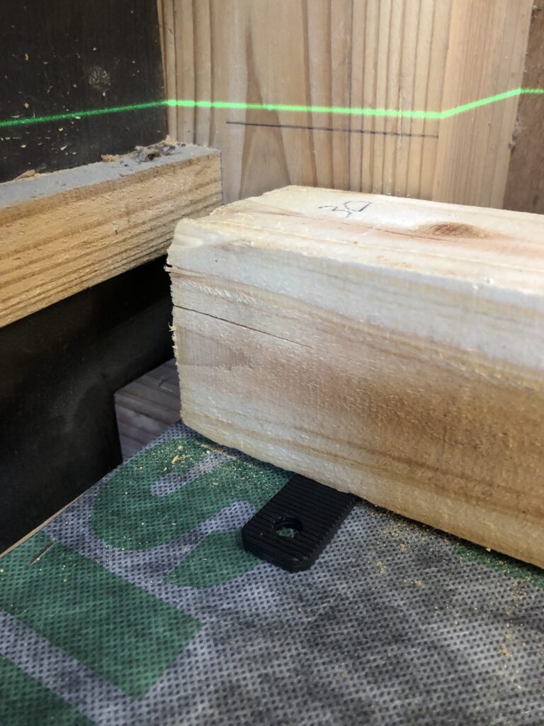 レーザー墨出し器を使って水平をとりながら固定します。