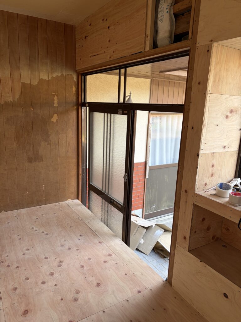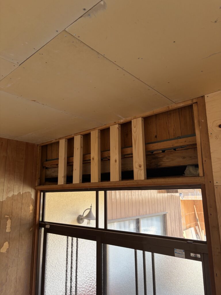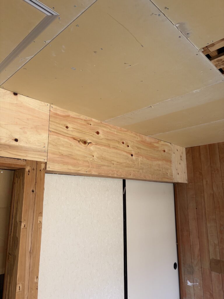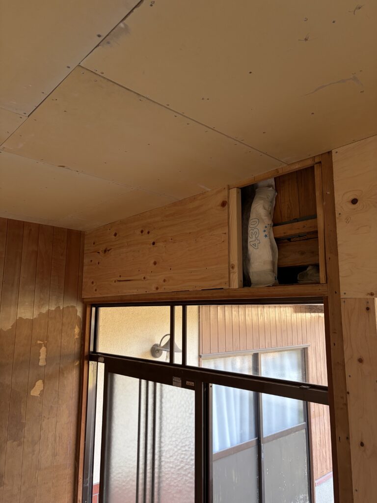 次は旧とと部屋の北側上部にコンパネを張ります。