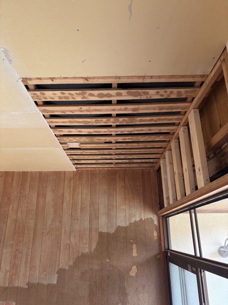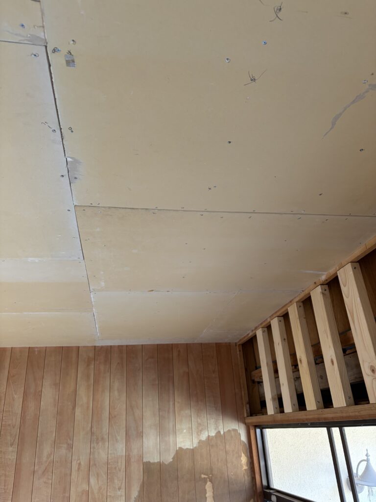 次は旧とと部屋の天井北側に石膏ボードを取り付けます。