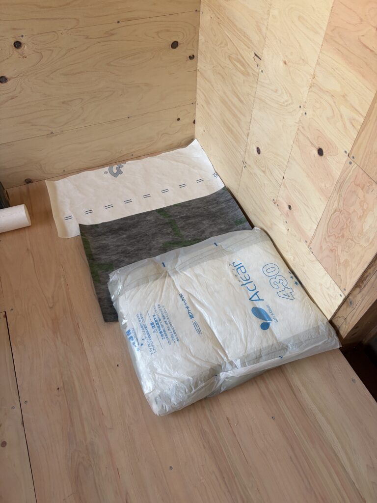 湿防水シート、断熱材、遮音シートは用意が終わり。