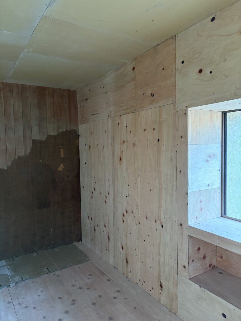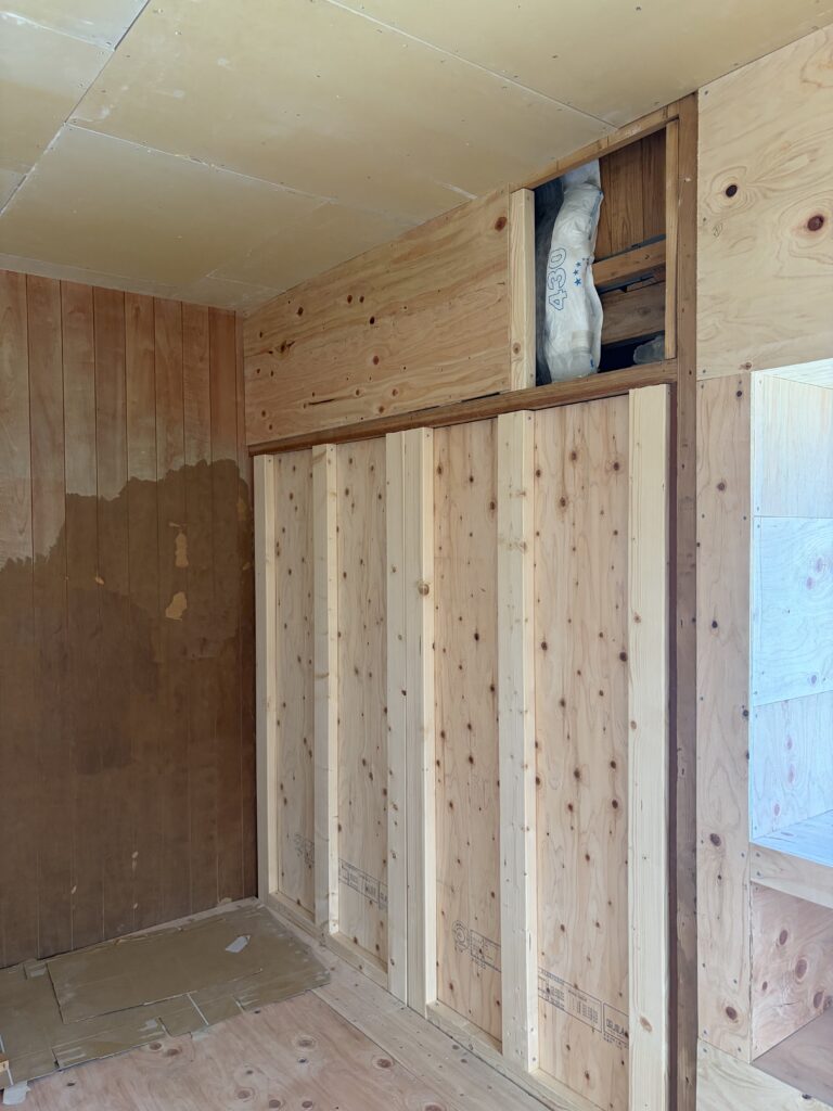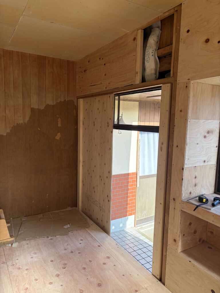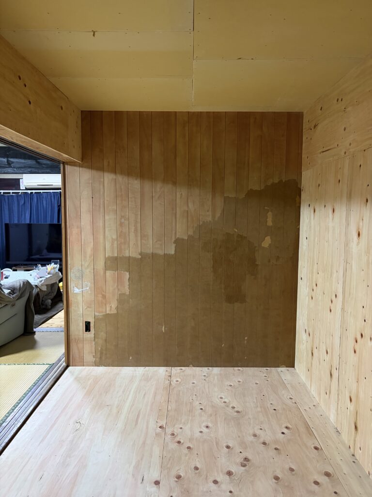 まずは旧とと部屋の北側にコンパネで壁を作製します。