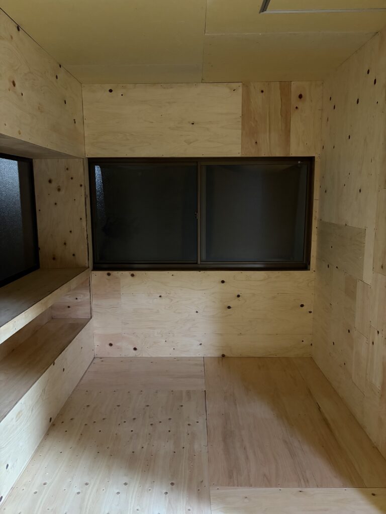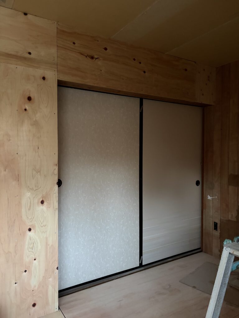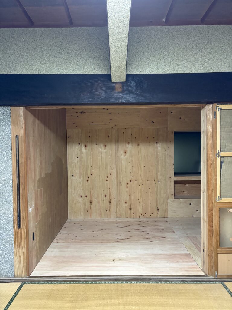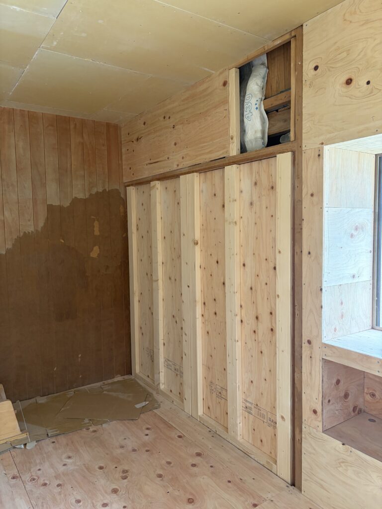 まずは旧とと部屋の北側にコンパネで壁を作製します。
