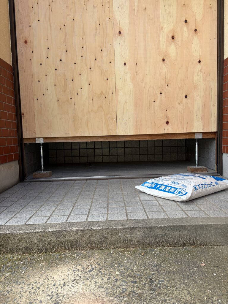 次はぼっさ部屋の玄関付近の床下は通気口がなくなるので、床下調湿剤を入れます。