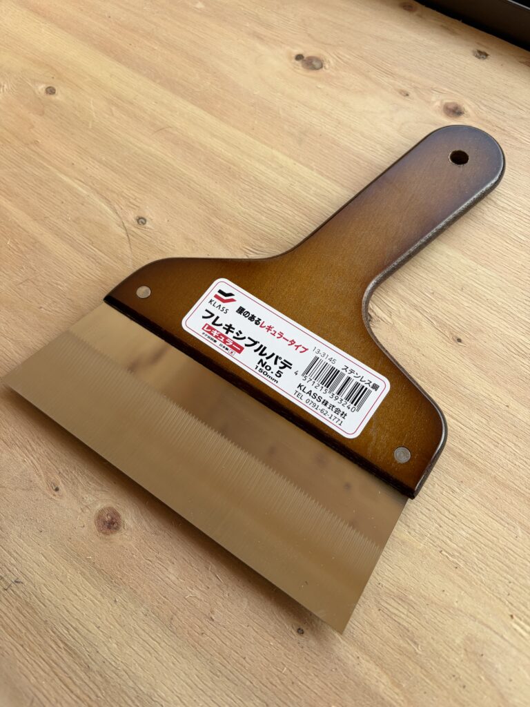 YouTubeの動画を見て、見よう見まねでパテを塗っていきます。