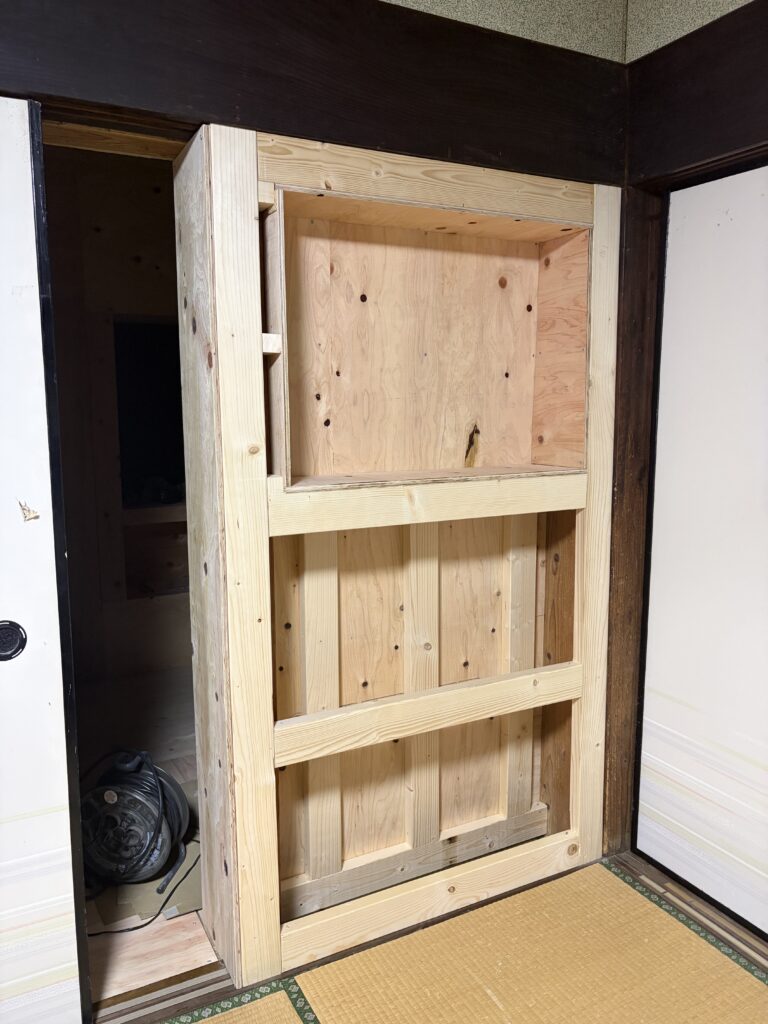奥行きがあるので物を置く棚も作ります。