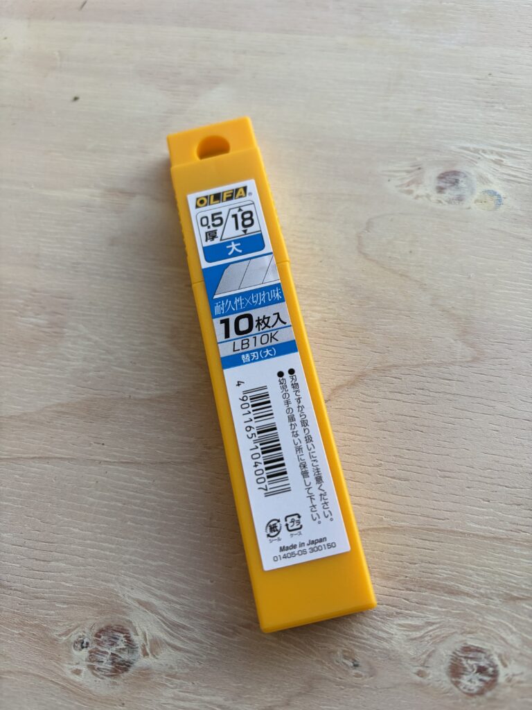 まずは昨日の反省点として、カッターの切れ味が悪かったことが挙げられるので、昨日替刃を購入しました。