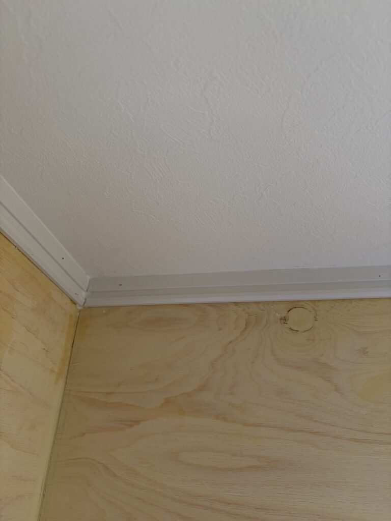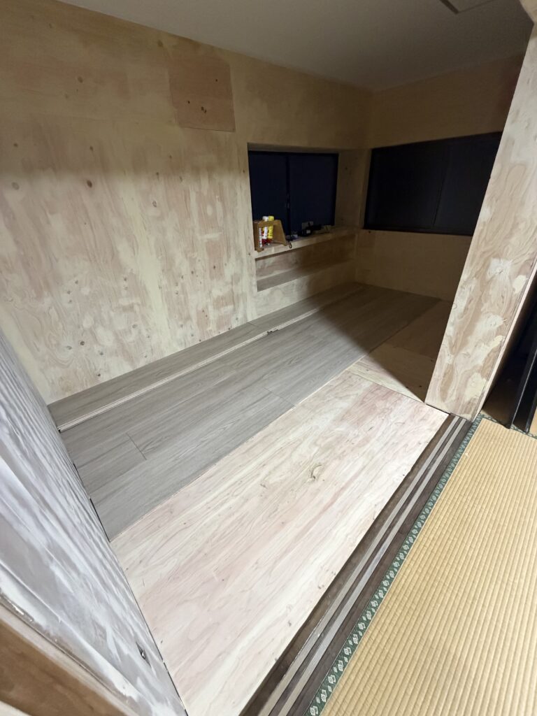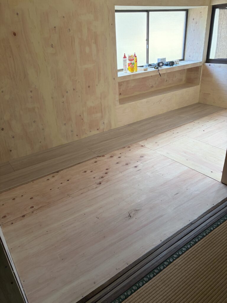 壁紙同士の突き合わせに若干隙間ができたけど、昨日より全然良いです。