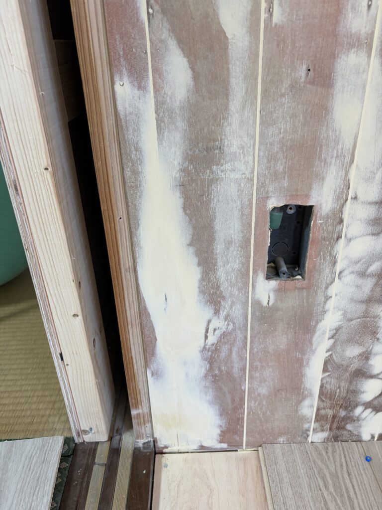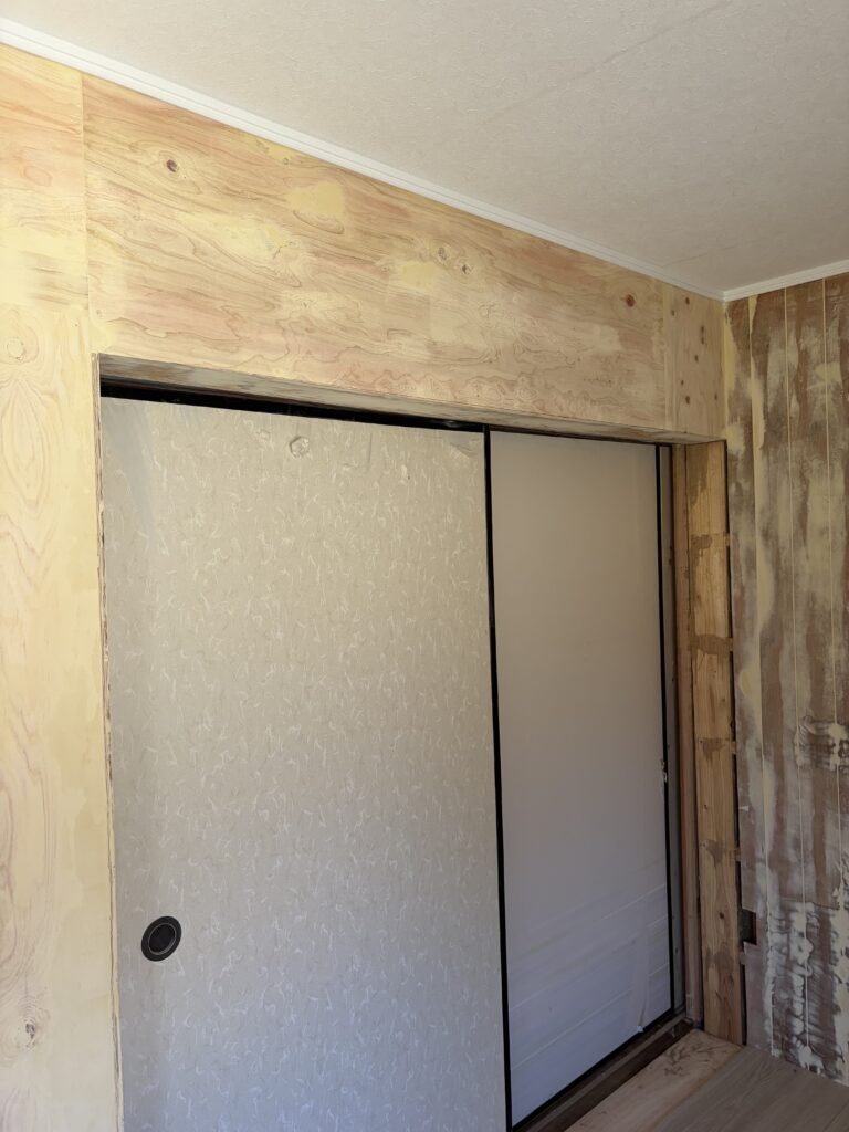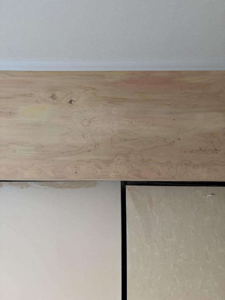 ふすま上部の柱の真ん中付近が下がているので、アコーディオンドアの仮置きしても入りません。