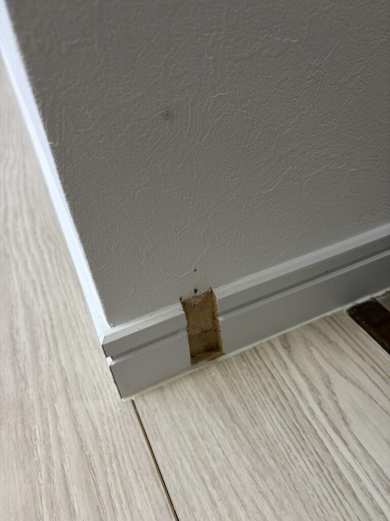 ドアと巾木が干渉してマグネットの効きが弱かったので、巾木に切掛けを入れました。